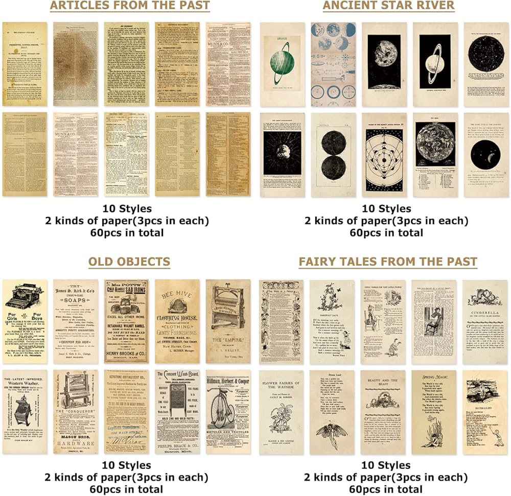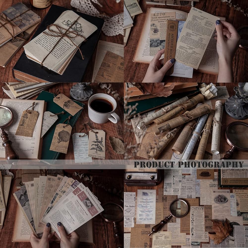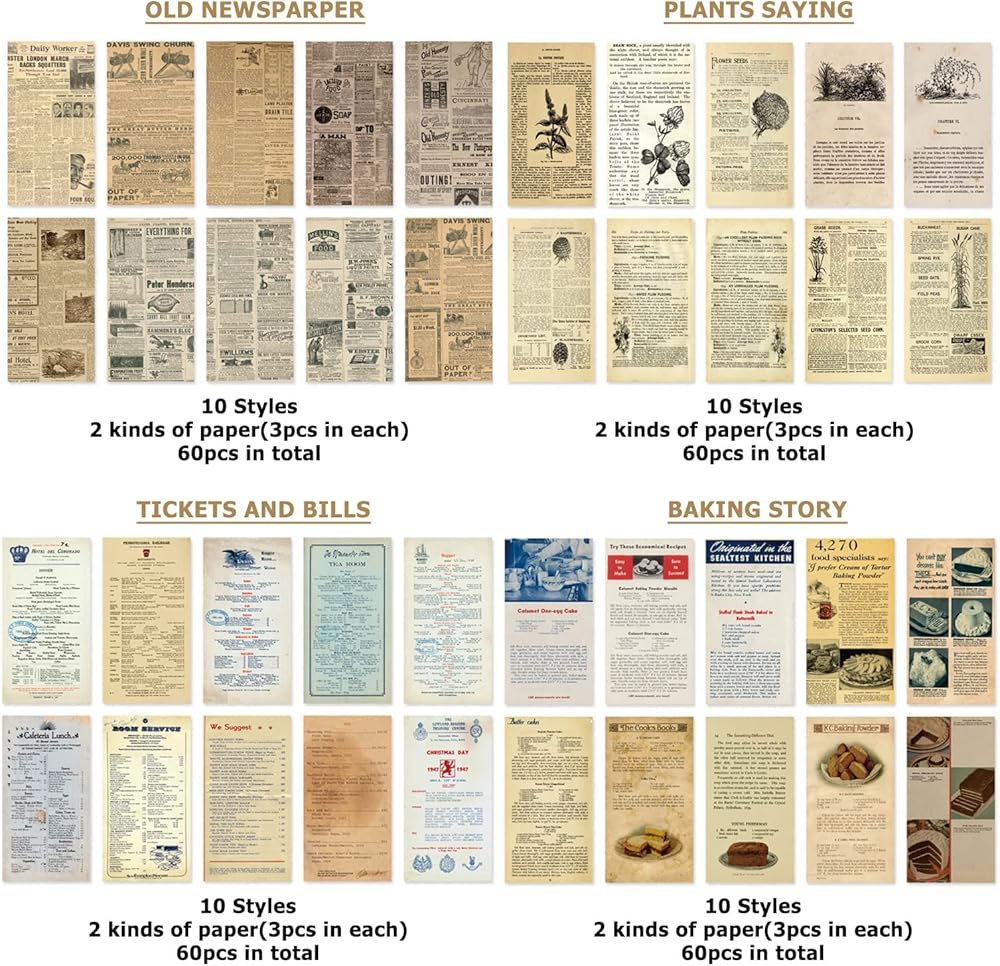 480 قطعة من ورق القصاصات العتيق مقاس 6 × 3 بوصة، ورق زخرفي من VEINARDYL، لوازم يومية غير المرغوب فيها، ورق قصاصات ورق عتيق للديكور والحرف الفنية العتيقة لمخططي مذكرات السفر