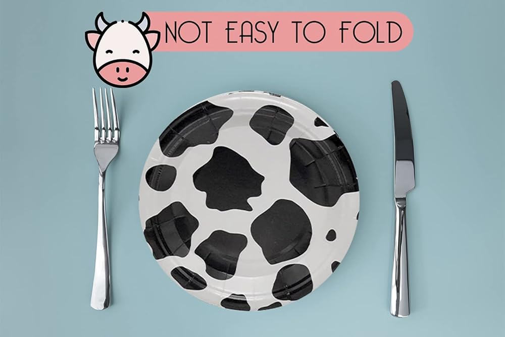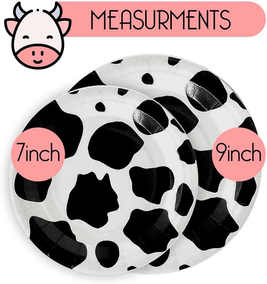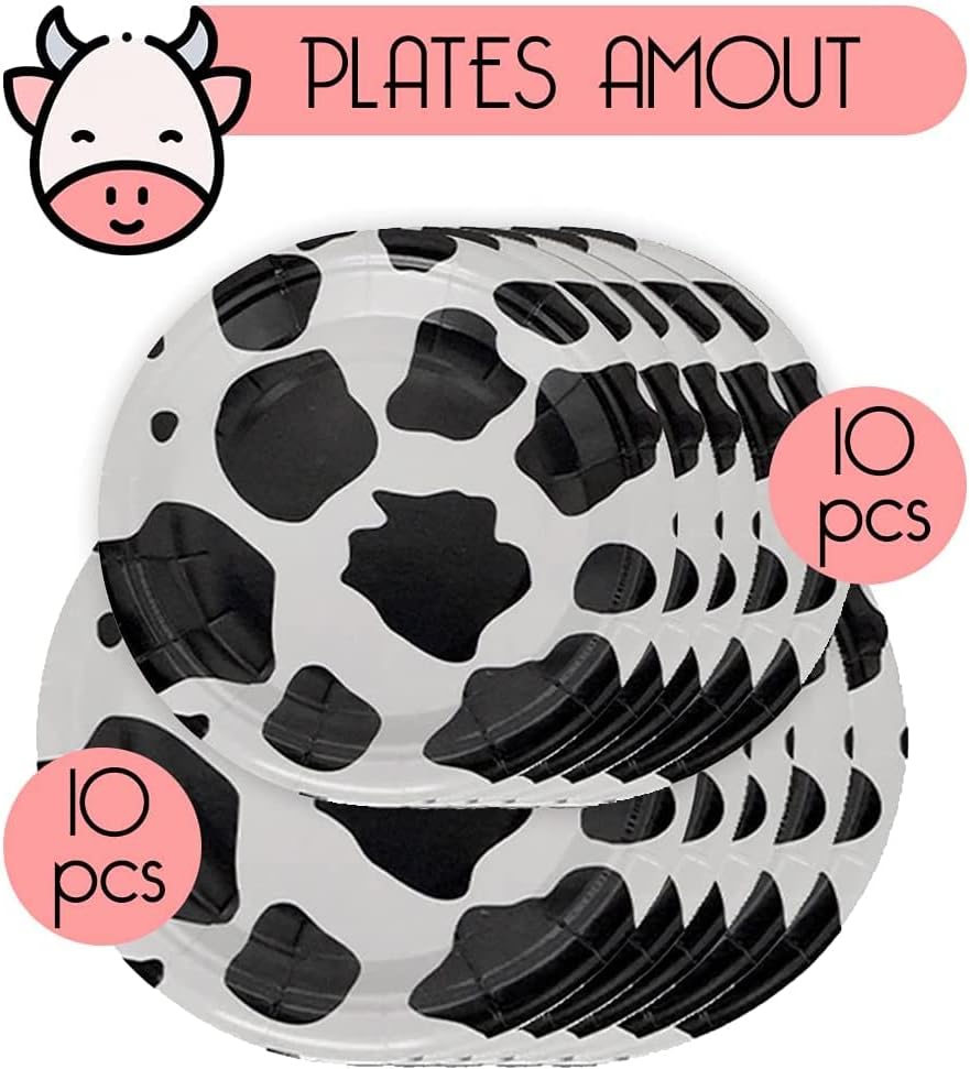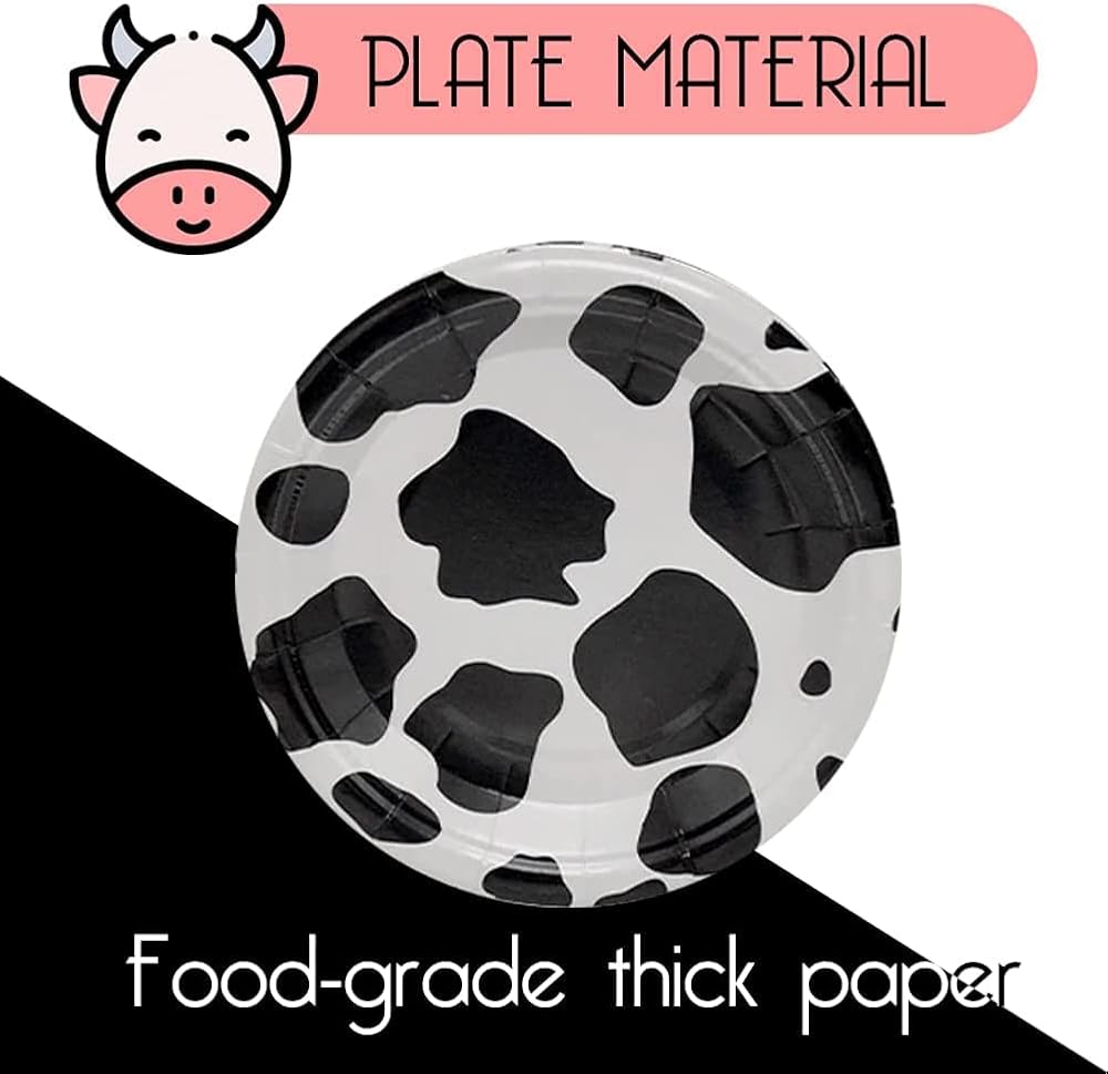 أطباق ورقية على شكل بقرة، أطباق حلوى البقرة هي ديكور مثالي لراعي البقر أو راعية البقر، الحفلات التي تحمل طابع المزرعة أو الحيوانات حيث يمكنك استخدامها: مجموعة بالونات بقرة، لافتة مطبوعة بقرة، بالونات بقرة موو، ماصات مطبوعة على شكل بقرة، حقائب حفلات بقرة وغيرها من الملحقات