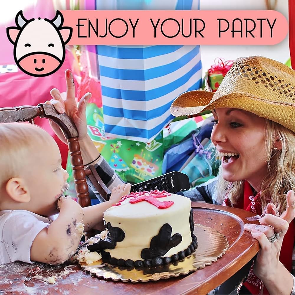 استخدم لوازم حفلات أعياد الميلاد التي تحمل طابع البقرة لمزيد من الألوان مع شريط البقرة وبيناتا البقرة وبالونات البقرة للحفلات، ستتحسن حفلتك مع ديكورات الحفلات المطبوعة على شكل بقرة. كل هذا مثالي لمستلزمات حفلات أطباق البقرة
