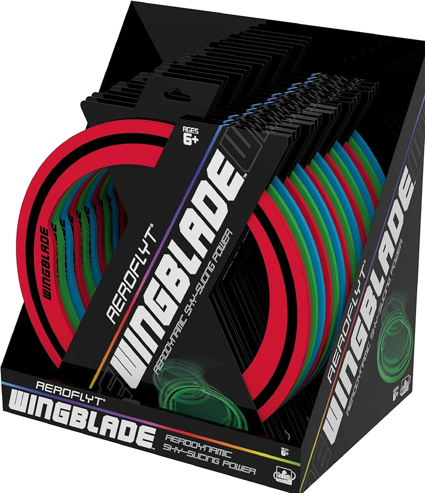 Get ready for outdoor fun with Aeroflyt Wingblade! This 9.5" aerodynamically-designed disc slices through the air to fly incredible distances. It's lightweight and easy to carry, making it simple to play wherever you go. Challenge your friends to see who can throw it the farthest! Recommended for ages 6 and up.