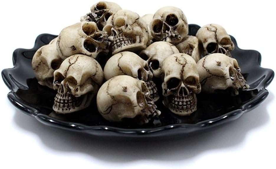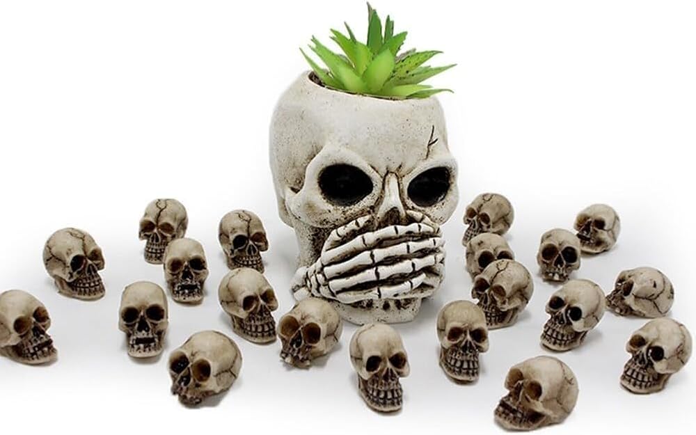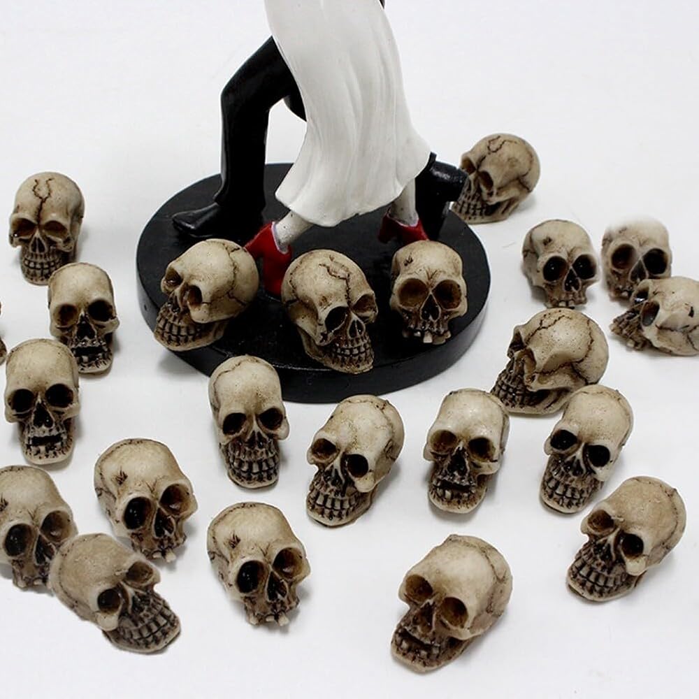 20 قطعة من تماثيل الهالوين المصغرة ورؤوس الجماجم المرعبة من الراتنج هيكل عظمي صغير زينة للهالوين دعامات مزحة للهالوين لعبة مفضلة للحرف اليدوية DIY للهالوين بار المنزل وحفلات بونساي وديكور المناظر الطبيعية