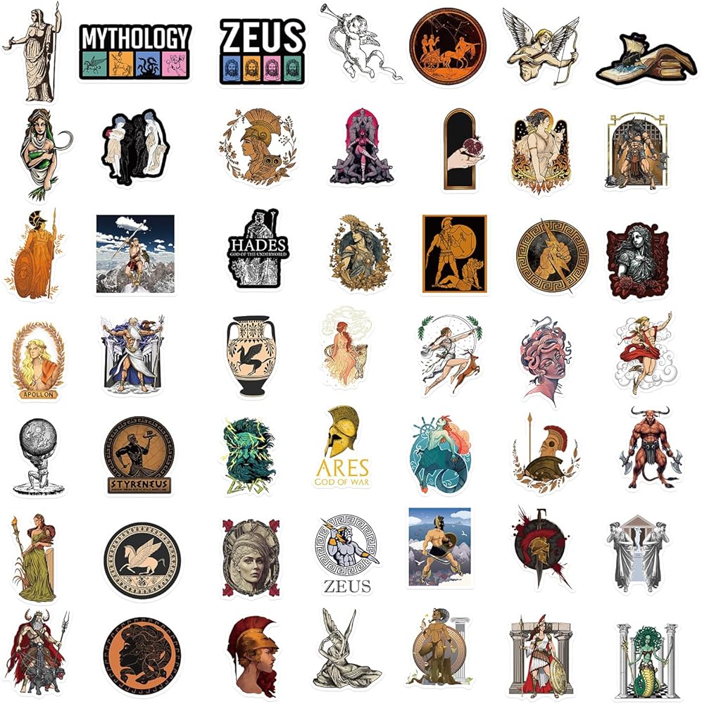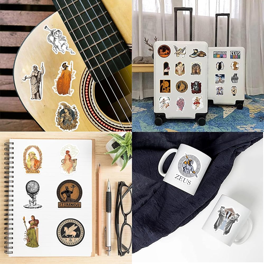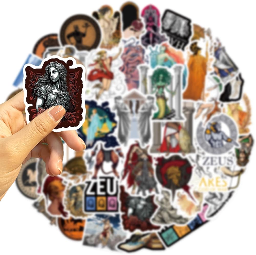 50 قطعة من ملصقات الاسطورة اليونانية من الفينيل المقاوم للماء لزجاجة المياه واللابتوب والنوت بوك والجوال ولوح التزلج والامتعة للاطفال والمراهقين والبنات والبالغين
