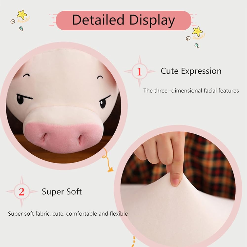 جودة عالية: هذا الحيوان المحشو بالخنزير مصنوع من نسيج قطيفة ناعم ممتاز وقطن البولي بروبيلين عالي الجودة. الأقمشة الصديقة للبشرة تمنحك ملمسًا أفضل للبشرة، وتجعل الوسادة الفخمة ناعمة ومريحة.