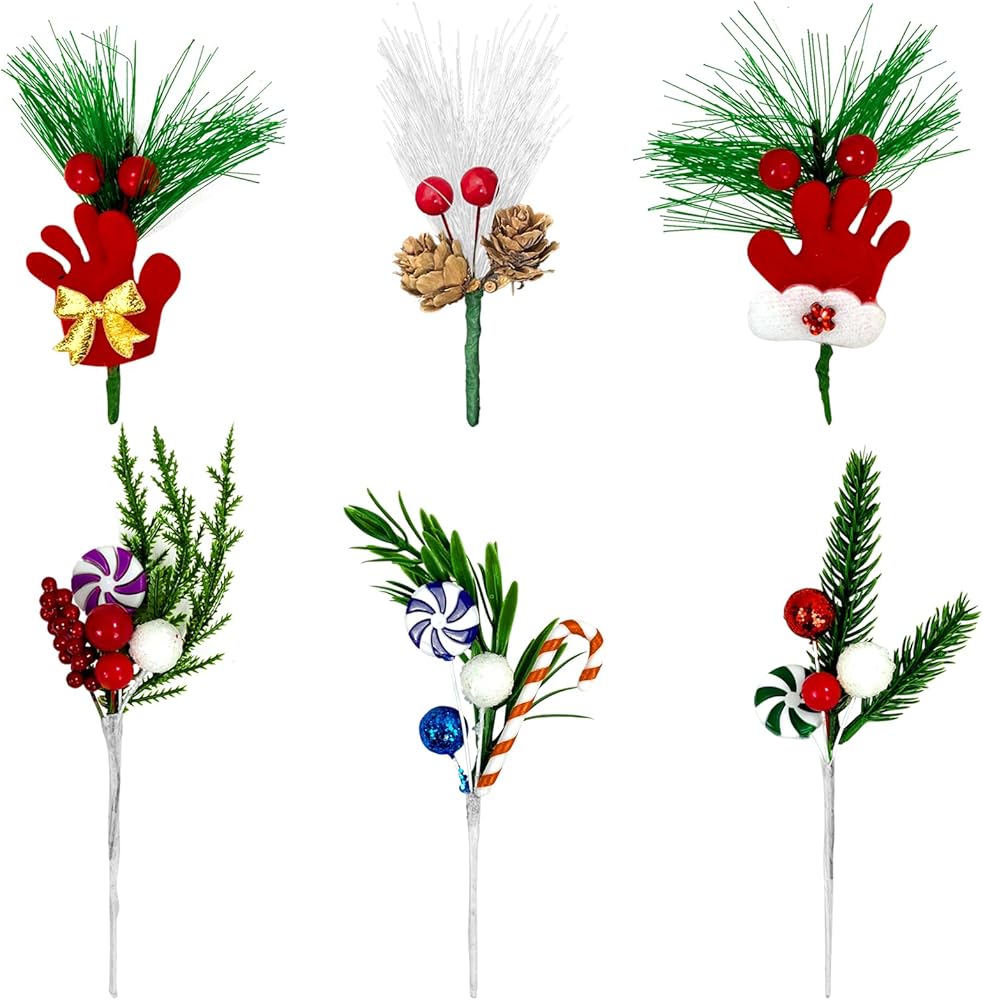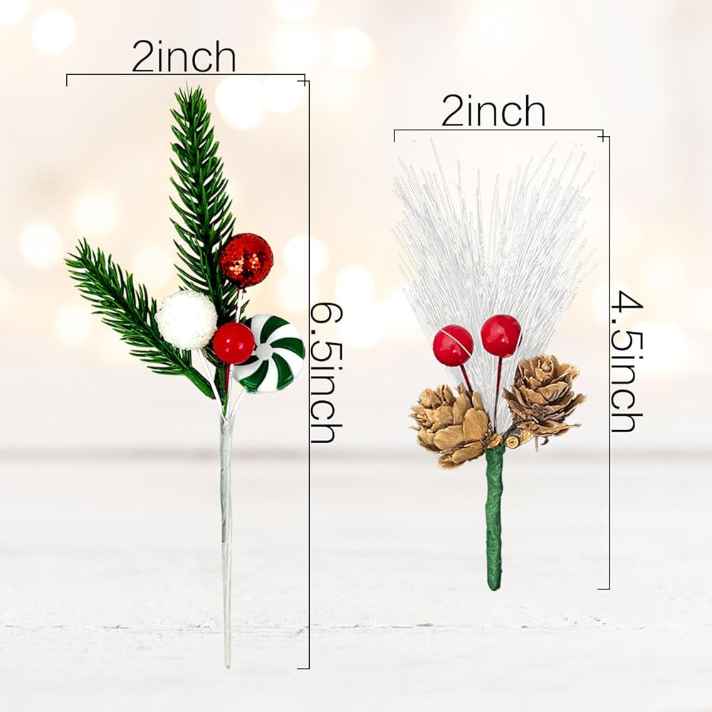 PACKAGE INCLUDES: 6Pack 6.5inch and 4.5inch in length artificial Christmas pine tree branches stems pine cones white berry for seasonal home decoration white garland DIY supplies, tree decorations and Christmas decorations and garland DIY.