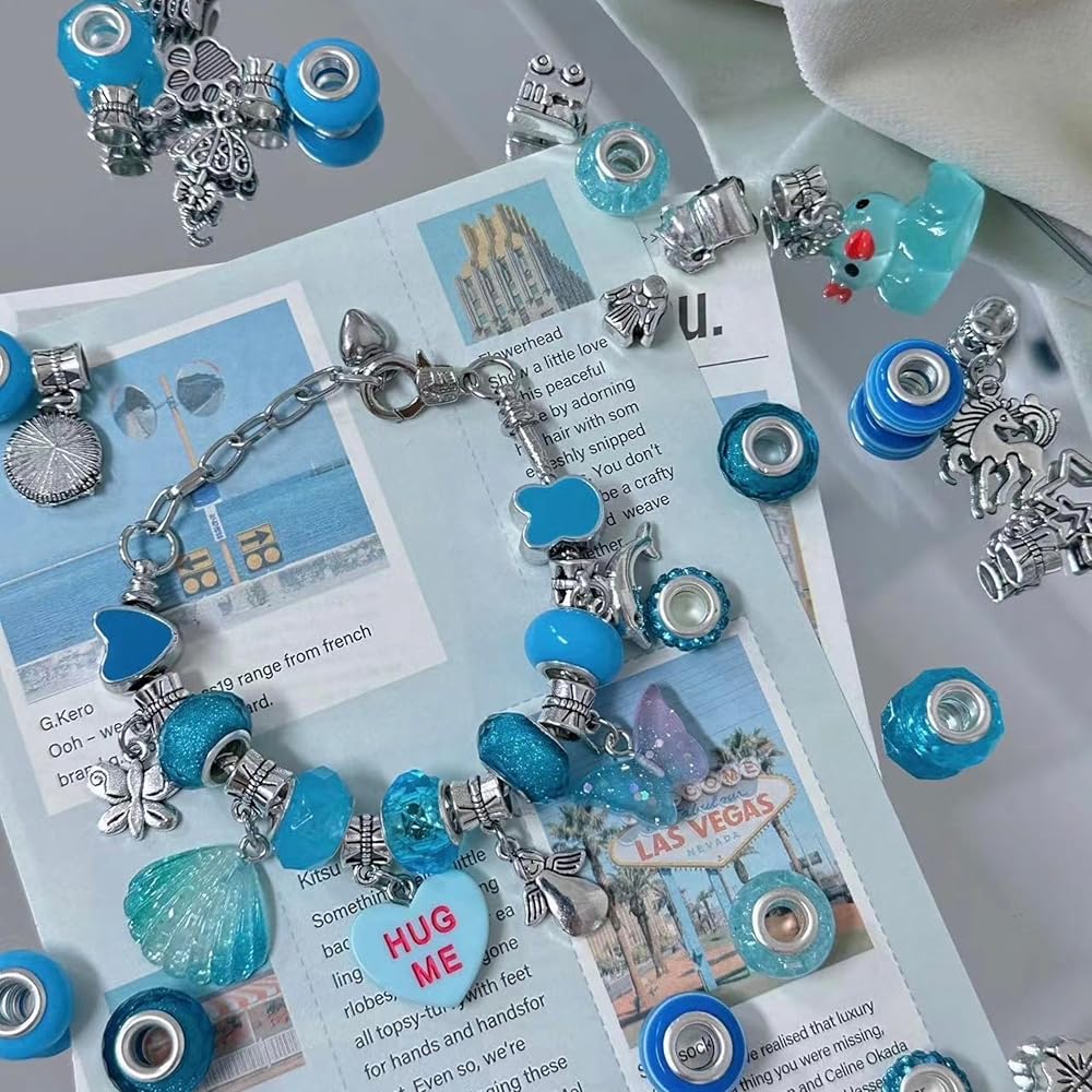 مجموعة كاملة لصنع أساور البنات: كل ما تحتاجه متضمن - 20 قطعة من الخرز الساحر، 20 قطعة من المعلقات الساحرة، 20 قطعة من الخرز المعدني، 3 قطع من خيوط الشمع الملونة، 3 قطع من الأساور الفضية، صندوق مجوهرات لطيف، وحقيبة يد - لصنع عدة أساور الأساور والقلائد الفريدة.