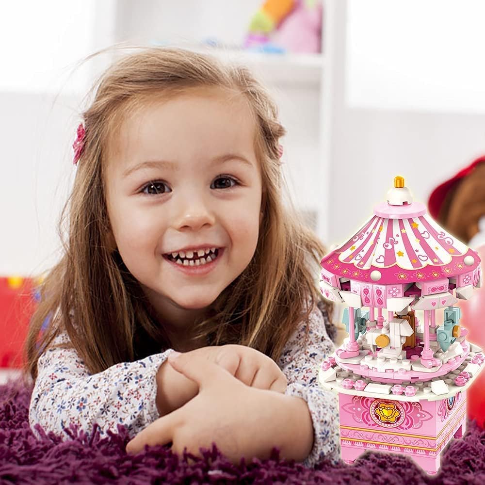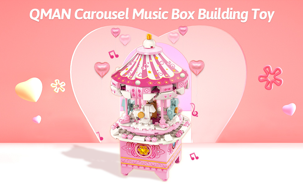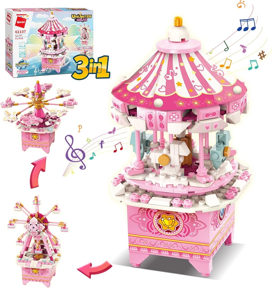 ألعاب بناء صندوق الموسيقى QMAN للفتيات والفتيان 6 7 8 9 10 11 12+ سنة 3 في 1 مجموعة بناء مكعبات بناء STEM لعبة هدايا مثالية للأطفال من سن 8 إلى 12 عامًا تدور مع الموسيقى