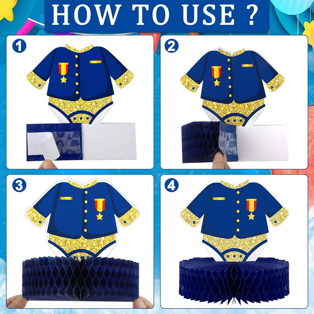 • سهلة التجميع: يستغرق الأمر بضع دقائق فقط لتجميع ديكورات حفلة صبي. كل ما عليك هو تقشير الملصقات وربطها بالبطاقة، ثم قم بفتح القاعدة الأساسية، وستحصلين على زخرفة صبي ملكي ممتع لحفل استقبال المولود