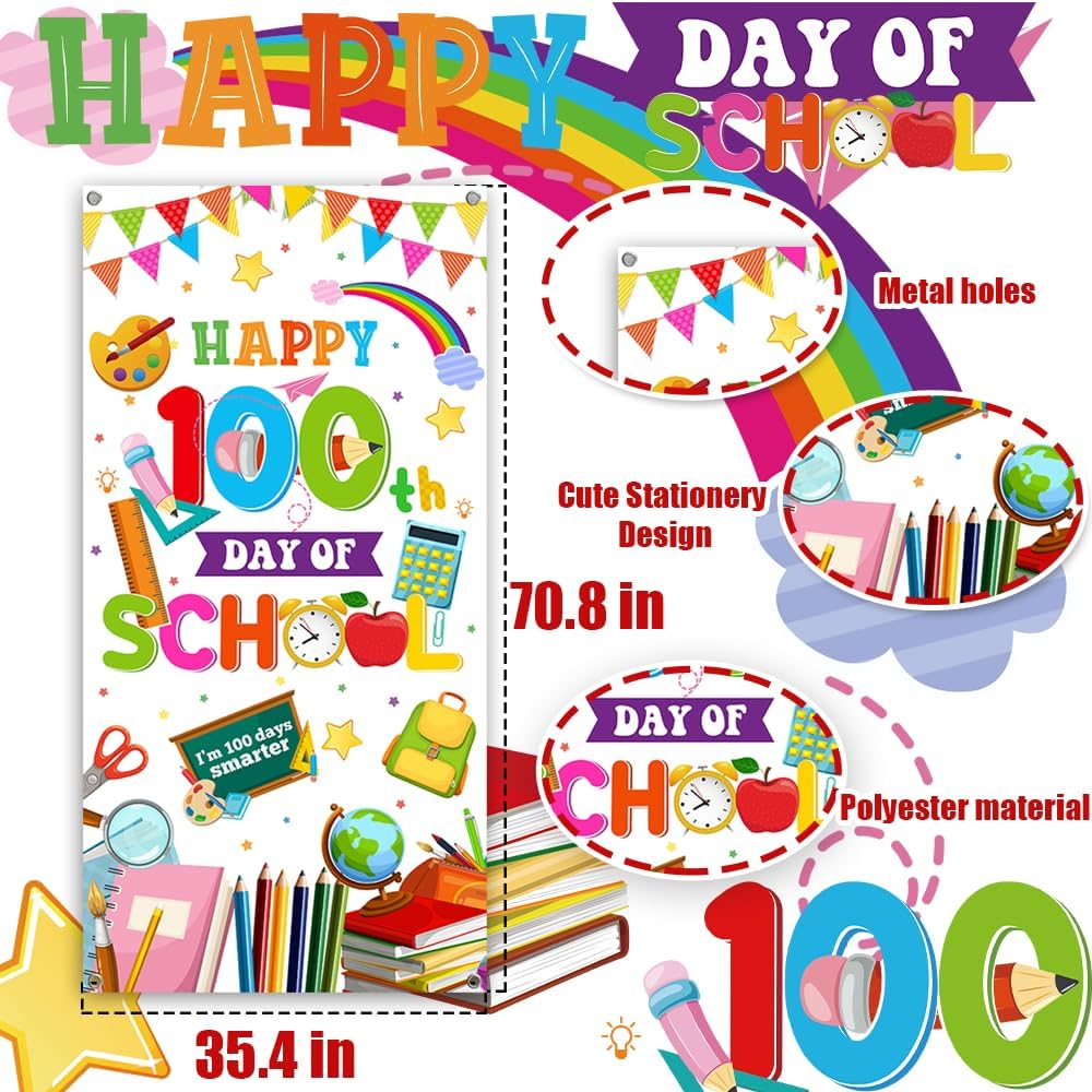 【لافتة مثيرة للاهتمام لليوم الـ 100】حجم غطاء باب المدرسة 100 يوم هو 180 * 90 سم / 70.8 * 35.4 بوصة، وهو مناسب جدًا للديكور خلال فترة الاحتفال بـ 100 يوم. ديكور الفصل الدراسي المثالي لحفلات المدرسة لمدة 100 يوم، وديكورات الفصول الدراسية لرياض الأطفال، ومناسبة لمعظم الأبواب، وإكسسوارات تزيين الحفلات المثالية لمدة 100 يوم!