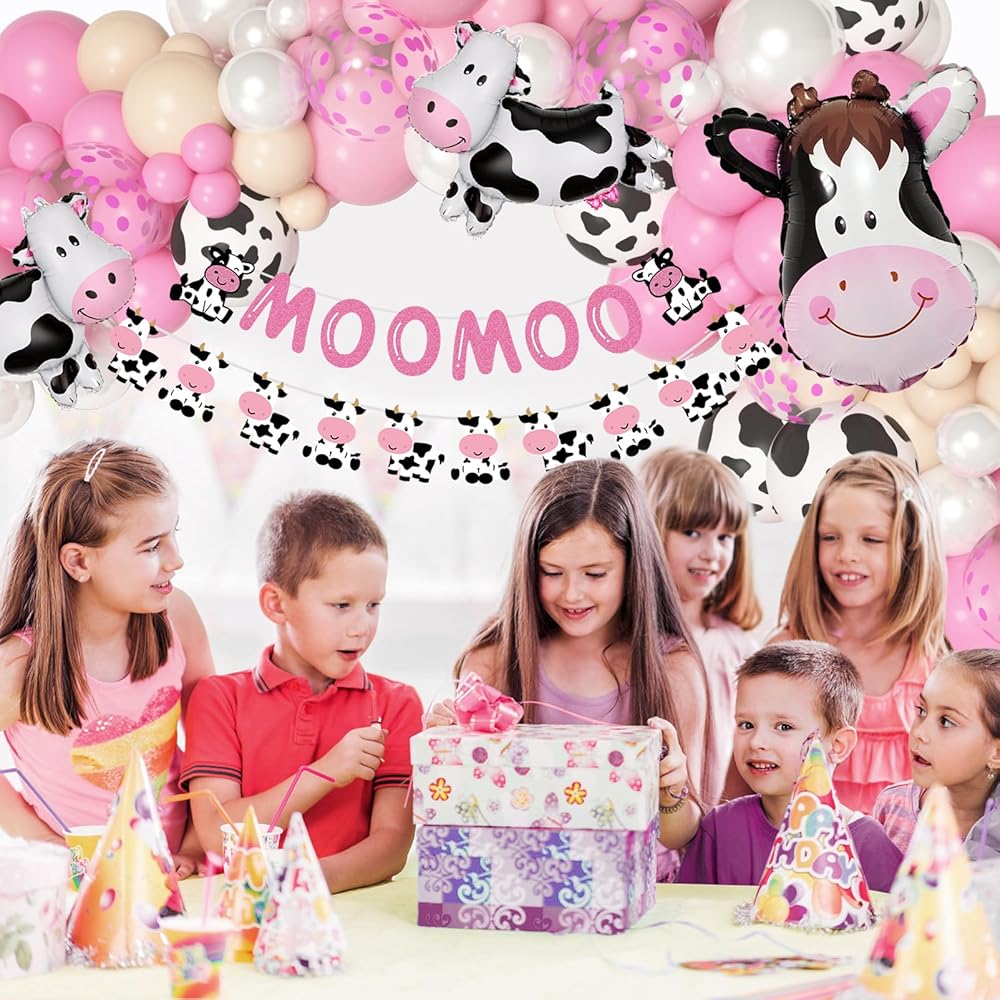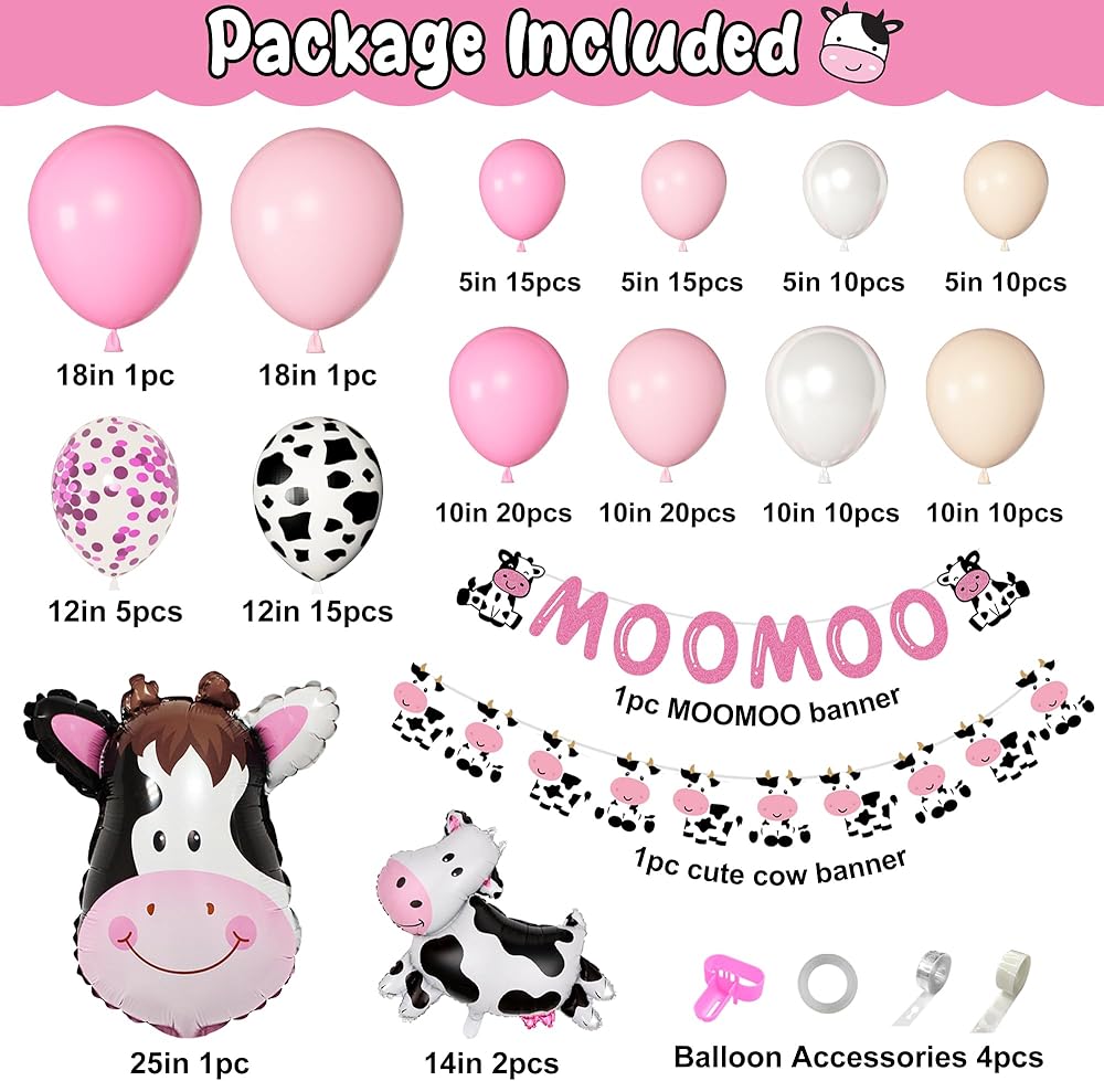 Versatile Decoration - This cow birthday decorations are perfect for a variety of events, including cowgirl baby shower, pink farm birthday party and more. The pink balloons and cow balloons scheme, combined with the confetti balloons and kawaii banners, creates a warm and playful look that will impress your guests. And this kit can be adapted to suit your needs and create a beautiful cow balloon arch that will transport your guests to the farm land and the western world.