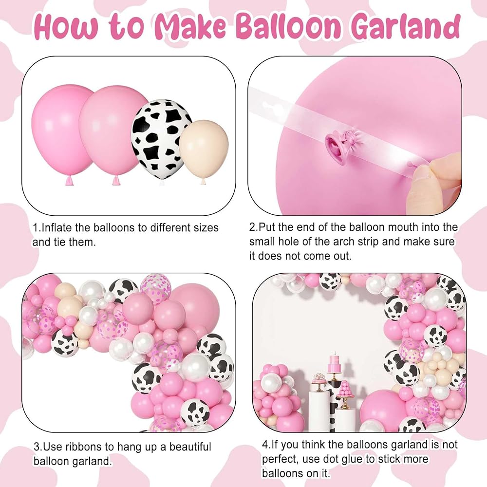 Easy to Assemble - We've included a step-by-step instruction and four balloon accessories to help you create your western balloon arch quick and easy. The cowgirl birthday decorations are simple to inflate and tie, so you can have your pink cow print party decorations set in no time. With a little time, you can create a stunning pink cow balloon arch that your guests will love. The banners are also easy to use, you can put them to your preference.
