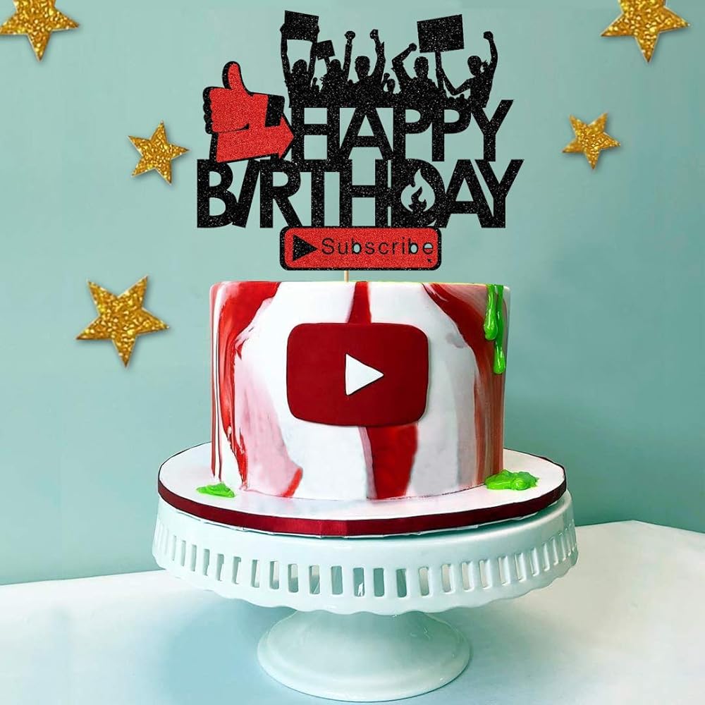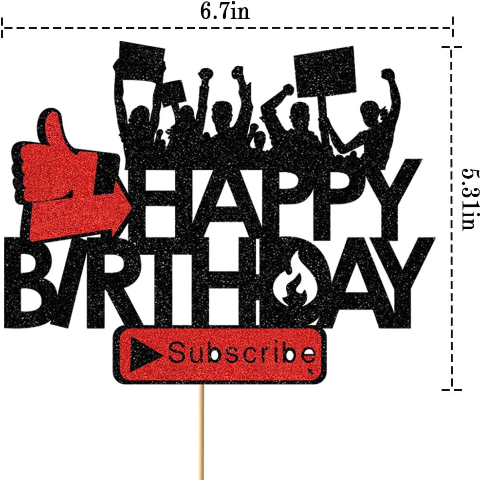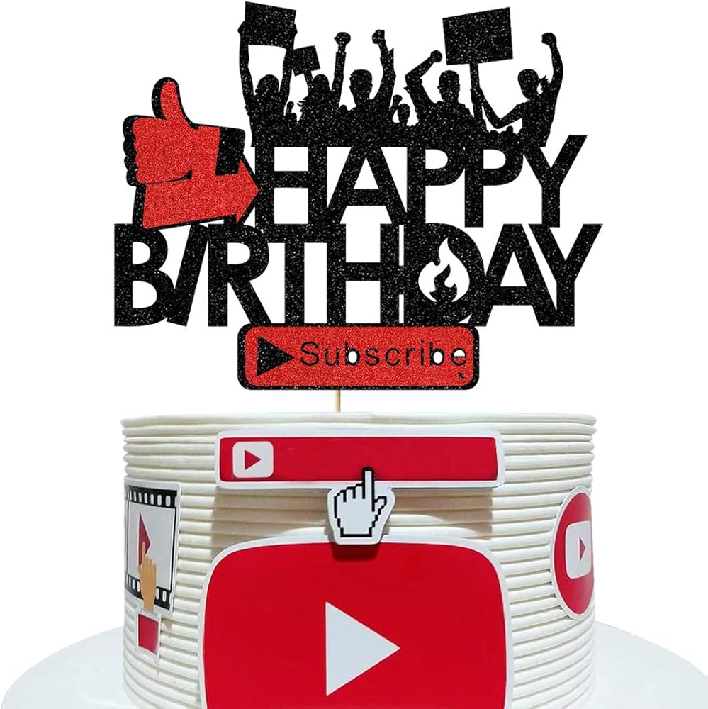 غلاف كعكة علوية من Glorymoment Play وسائل التواصل الاجتماعي، قطعة علوية لامعة لكعكة عيد ميلاد سعيد لأنبوبة زينة حفلة عيد ميلاد للمراهقين والبنات مستلزمات حفلات عيد الميلاد (16.7 سم × 13.9 سم)
