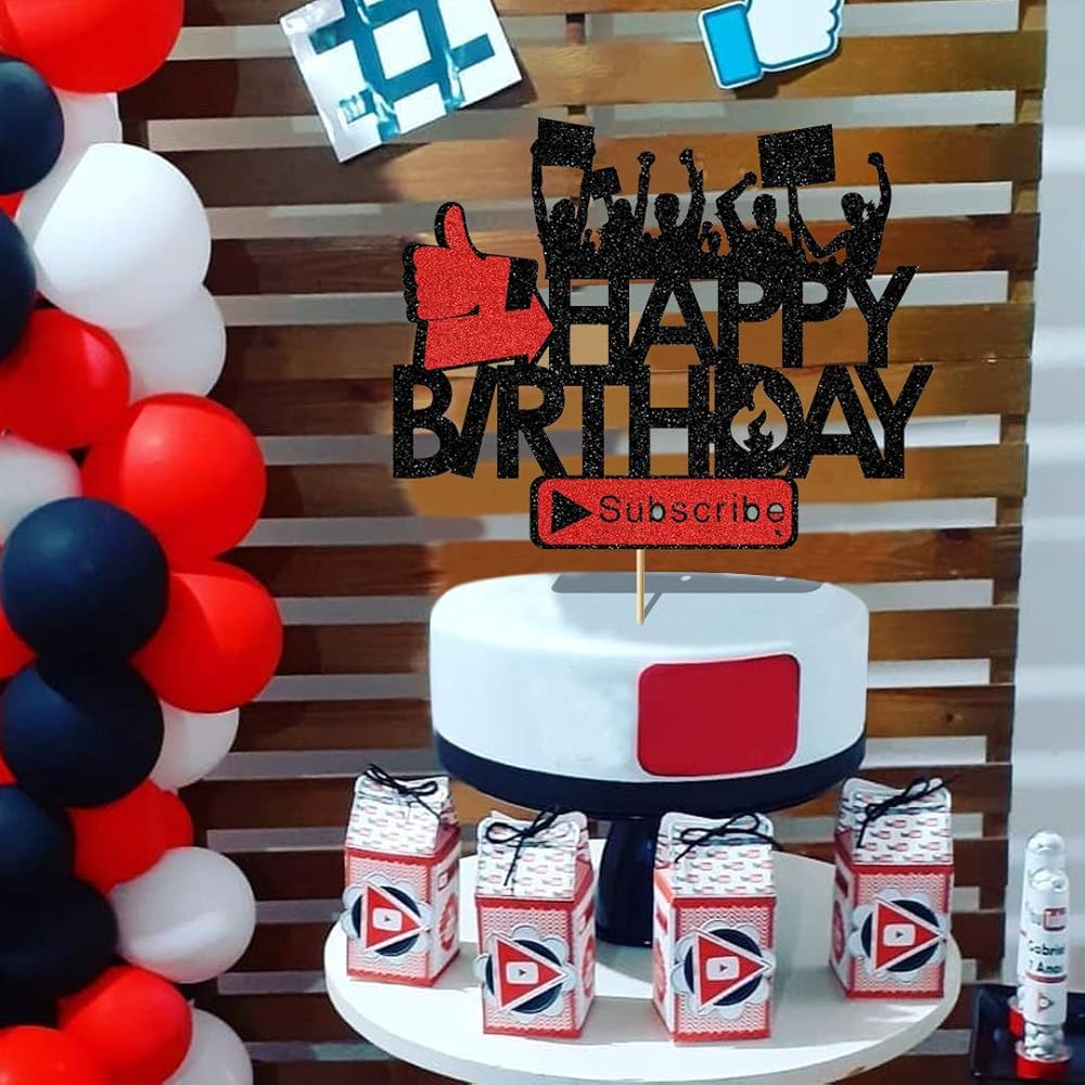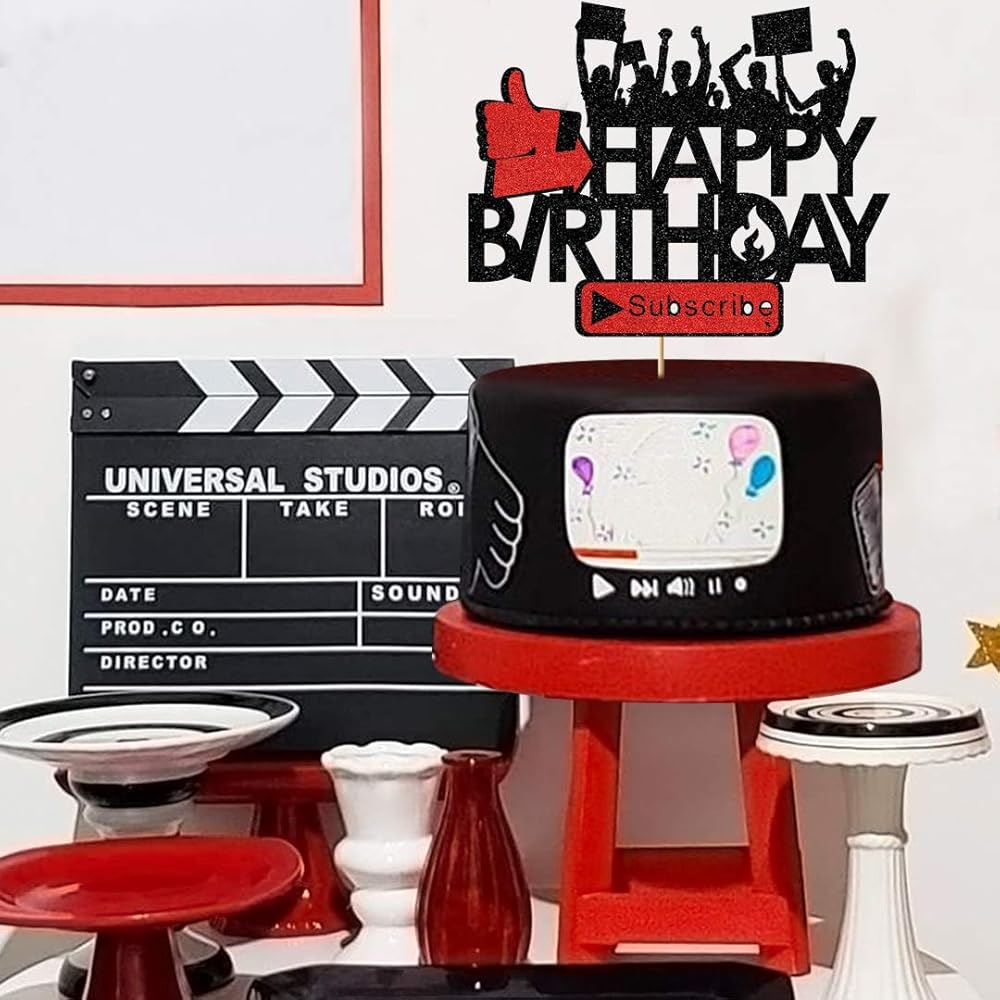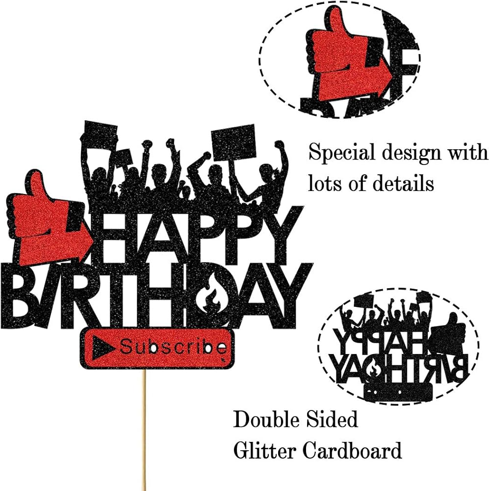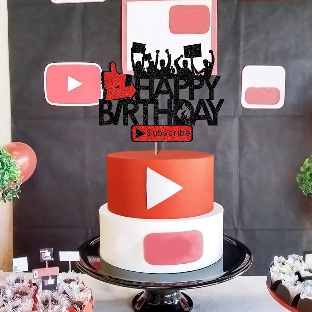 غلاف كعكة علوية من Glorymoment Play وسائل التواصل الاجتماعي، قطعة علوية لامعة لكعكة عيد ميلاد سعيد لأنبوبة زينة حفلة عيد ميلاد للمراهقين والبنات مستلزمات حفلات عيد الميلاد (16.7 سم × 13.9 سم)