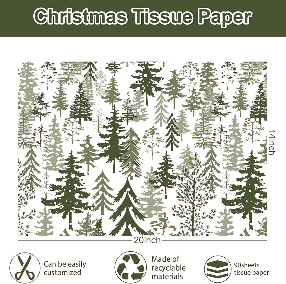 والين 90 ورقة مناديل ورقية للكريسماس بالوان مائية غابة ورق تغليف هدايا شجرة الكريسماس ورق فني لتزيين المنزل واكياس الهدايا وديكور الشتاء ورأس السنة الجديدة، 14 × 20 انش