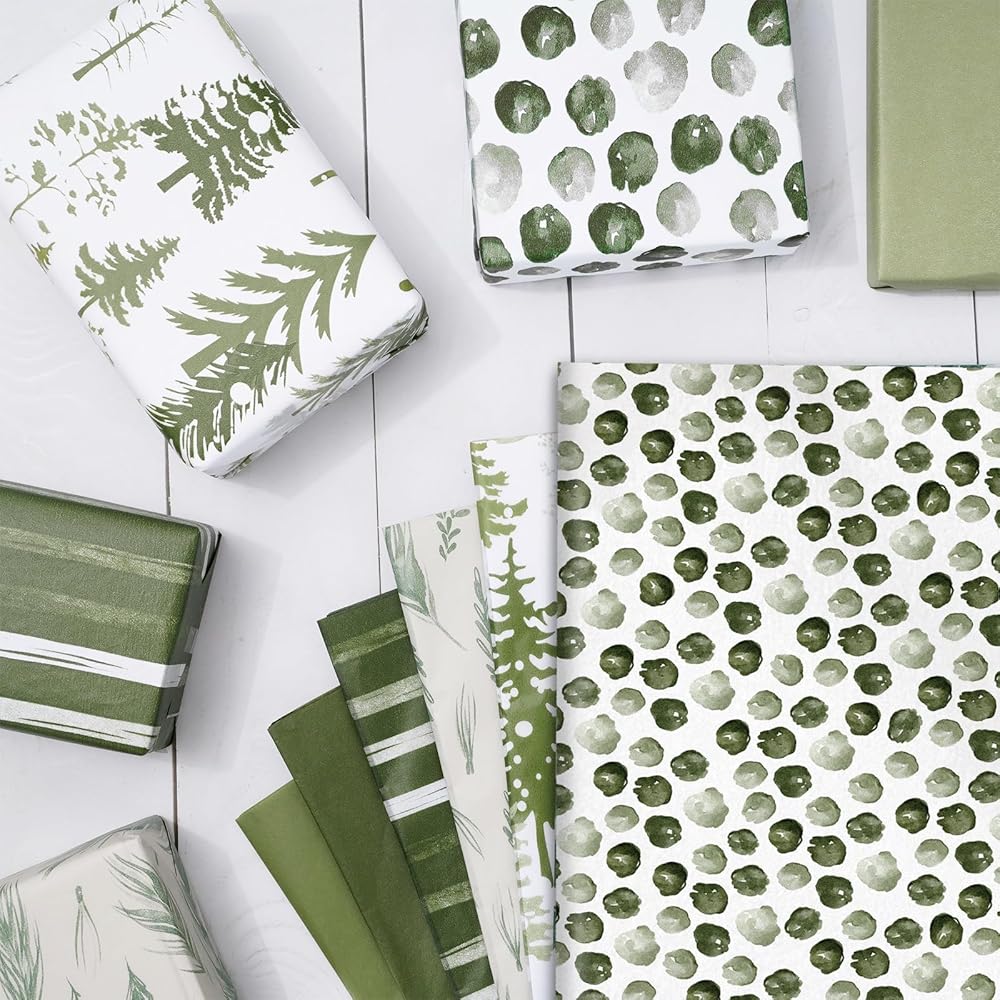 مصممة بألوان خضراء وأنماط غابة بألوان مائية، صدى جيد للكريسماس وموسم الشتاء، جديدة ورقيقة، رائعة للمشروعات اليدوية وغيرها من الإلهام الفني.