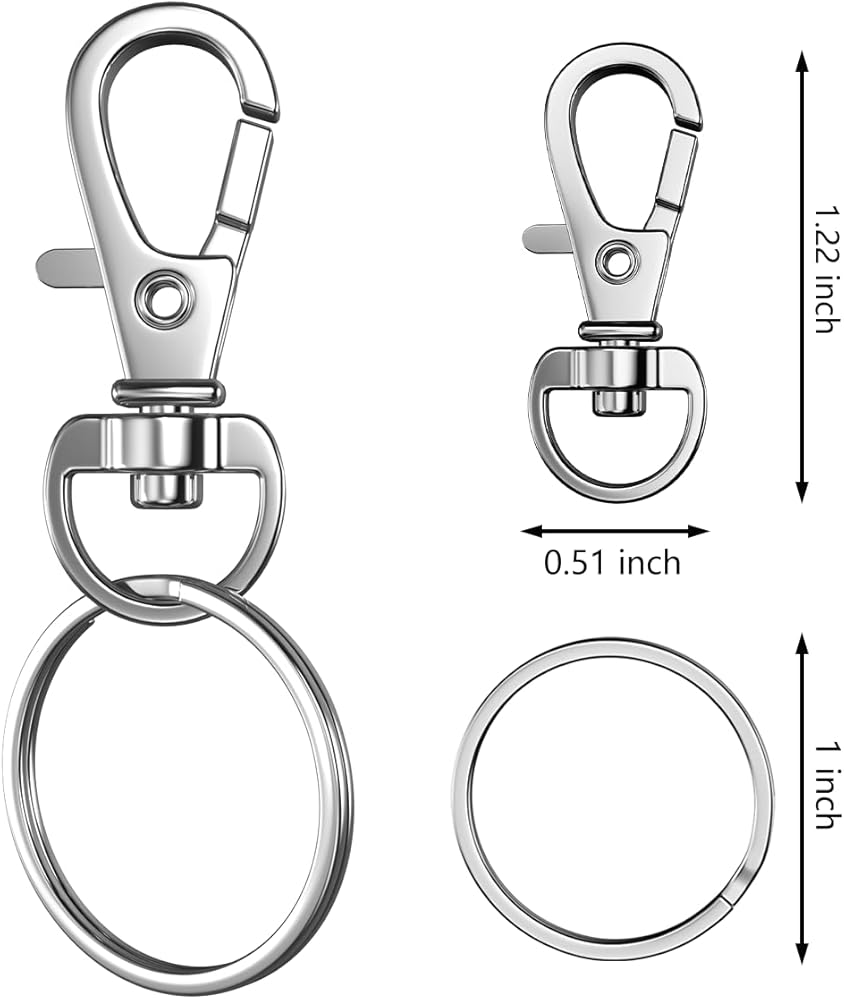 ما ستحصل عليه: تتضمن مجموعة المشابك الدوارة 50 قطعة من خطافات سلسلة المفاتيح و50 قطعة من حلقات المفاتيح لسلاسل المفاتيح، كافية لاحتياجاتك اليومية