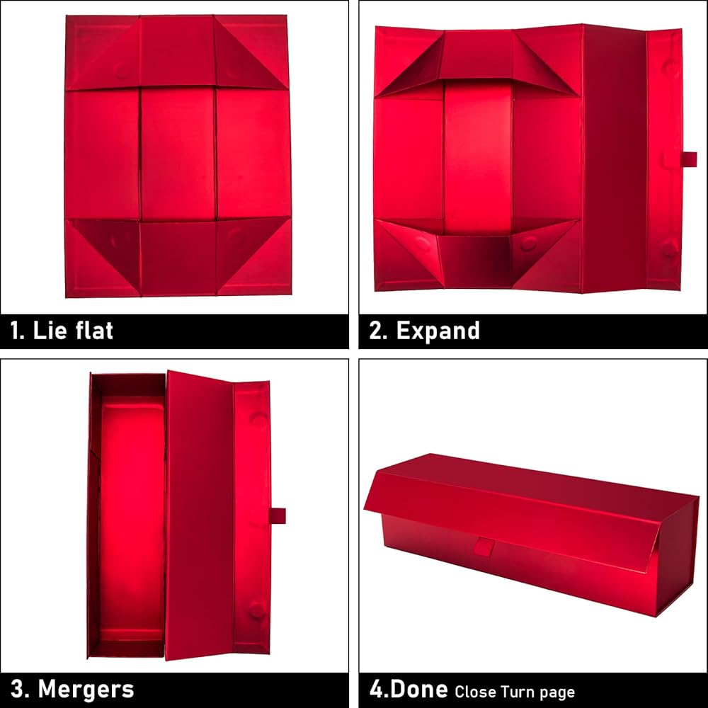 تصميم إغلاق مغناطيسي، صندوق هدايا قابل لإعادة الاستخدام: صندوق هدايا بغطاء مغناطيسي مخفي وقوي يسمح بفتح الصندوق وإغلاقه بشكل متكرر دون أي مشاكل. يمكن طيها معًا بسهولة في خطوتين باستخدام المغناطيس فقط وبدون شريط، مما يوفر لك الوقت والطاقة الثمينين.