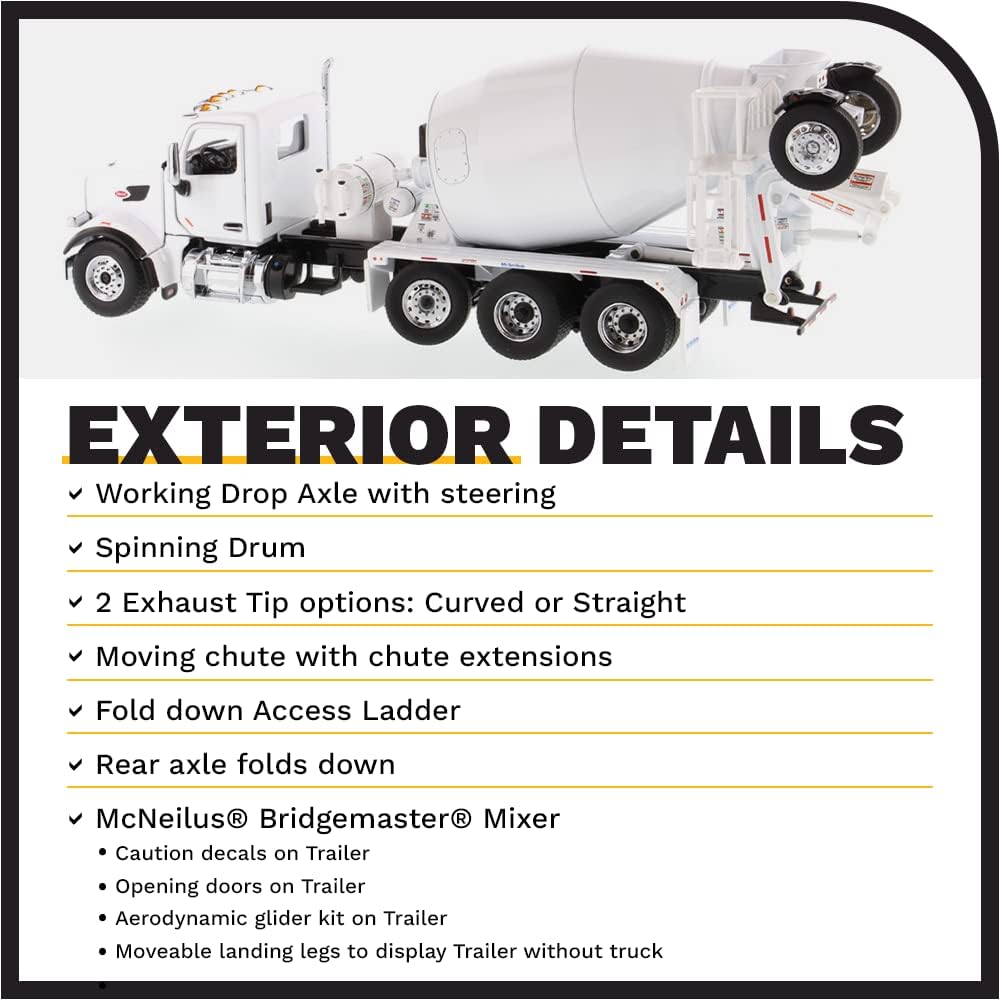 خلاط بيتربيلت 567 SFFA 1:50 مع خلاط بريدج ماستر اكسلر وماكنيلوس - ابيض لؤلؤي - 71074 - دييكاست ماسترز - سلسلة النقل
