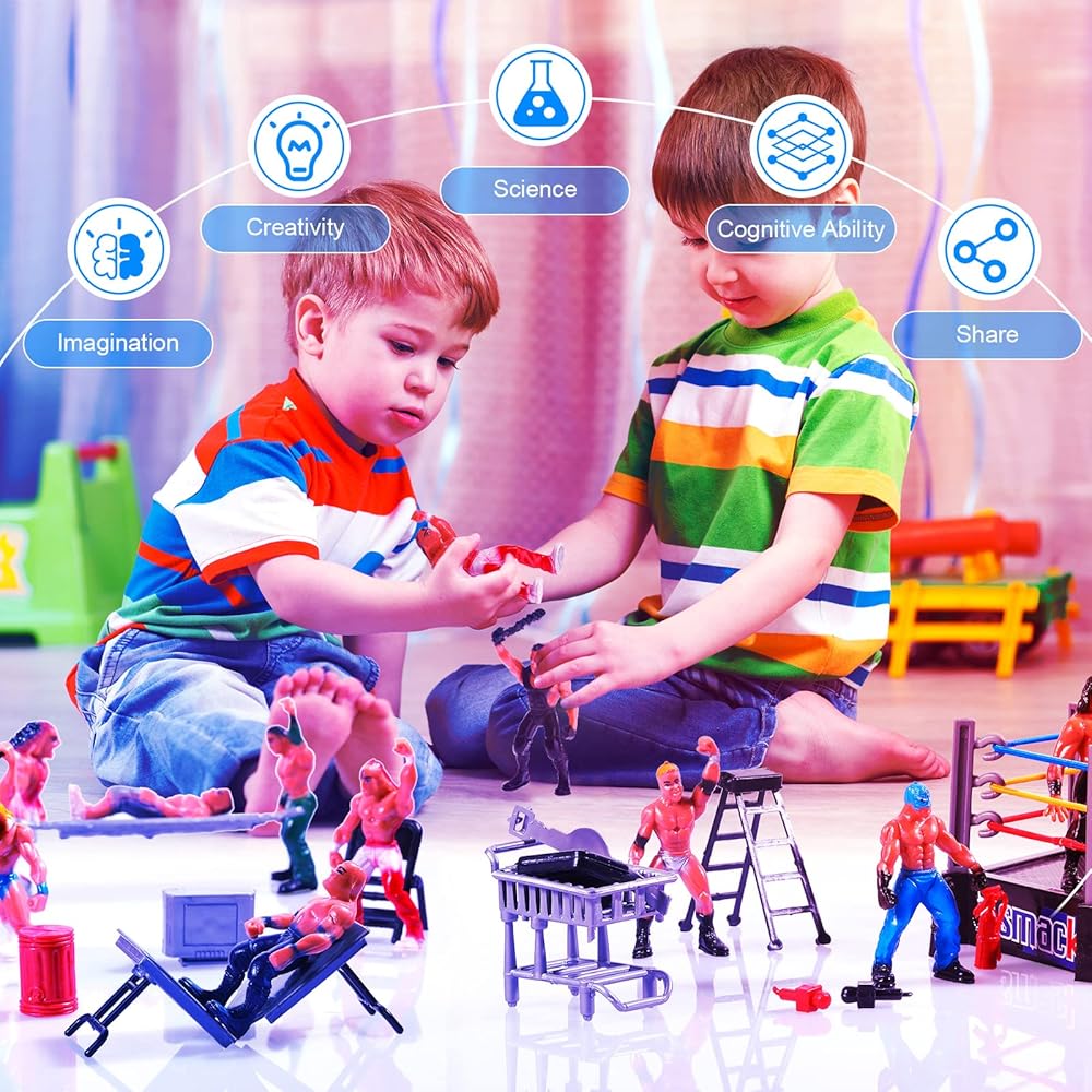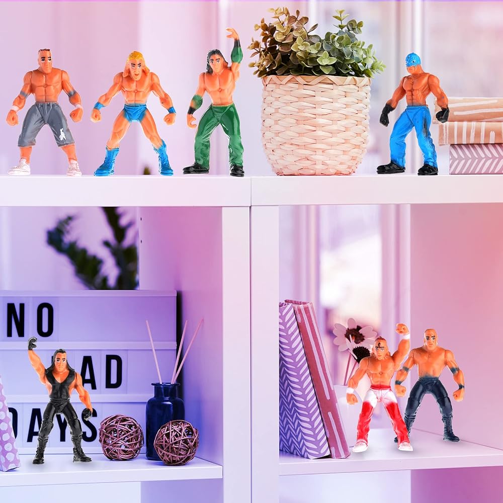 ألعاب ألعاب مضحكة: تتميز شخصيات المصارعة للأولاد بالعديد من الأوضاع والتعبيرات المختلفة، تتماشى مع الأزياء الملونة والإكسسوارات الوفيرة التي يمكن للفتيات والأولاد استخدامها لمحاكاة مباريات المصارعة الحقيقية، والتي يمكن أن تساعد في تحفيز خيالهم ومهاراتهم اليدوية، بالإضافة إلى اللعب مع أصدقائهم وتقوية صداقتهم، كما يمكن استخدامها كديكور للكعك لمحبي المصارعة