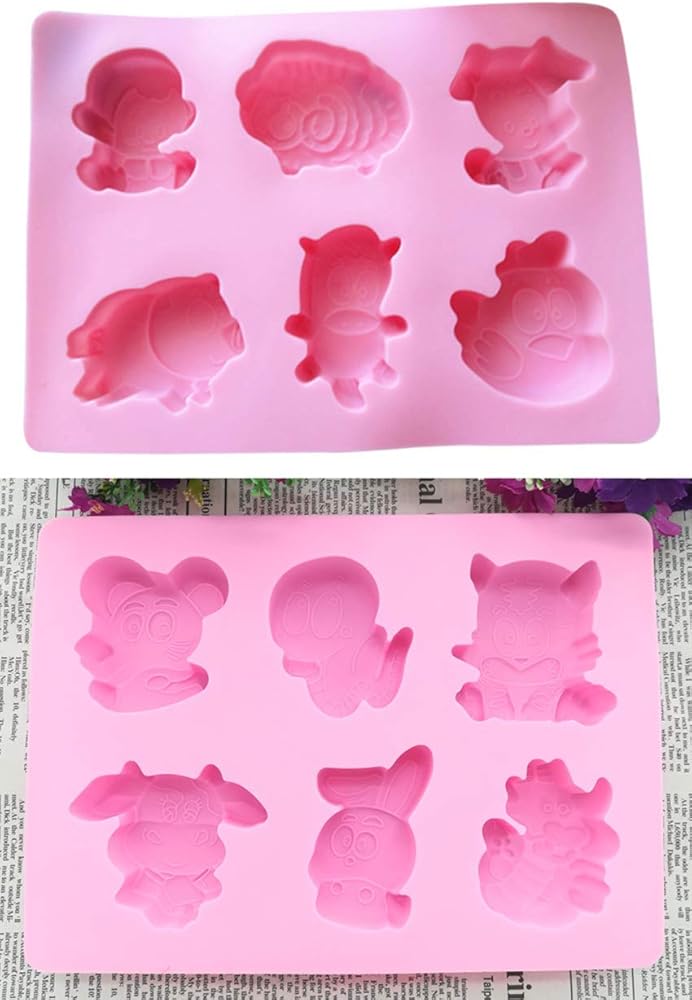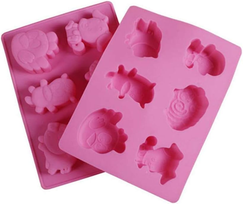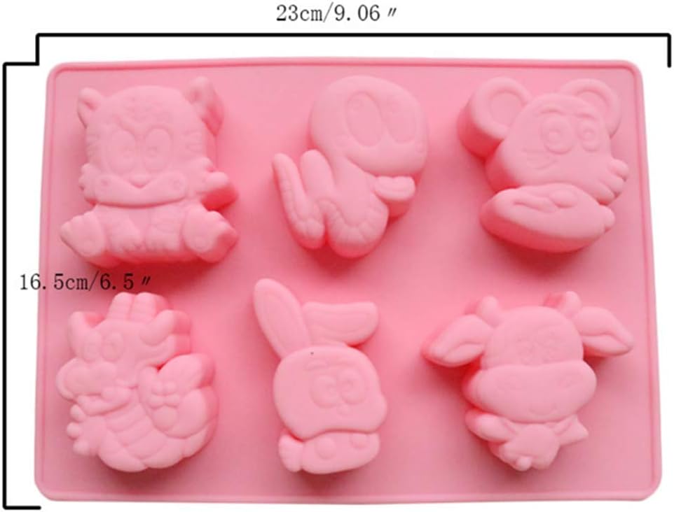 قالب سيليكون زودياك زودياك الصينية حيوانات سيليكون قالب كيك 6 تجاويف سيليكون للخبز كعكة الشوكولاتة فندان صابون يدوي الصنع، 2 حزمة، مربع