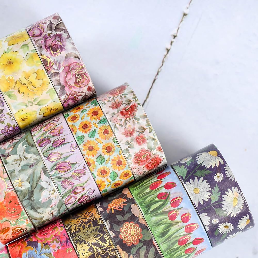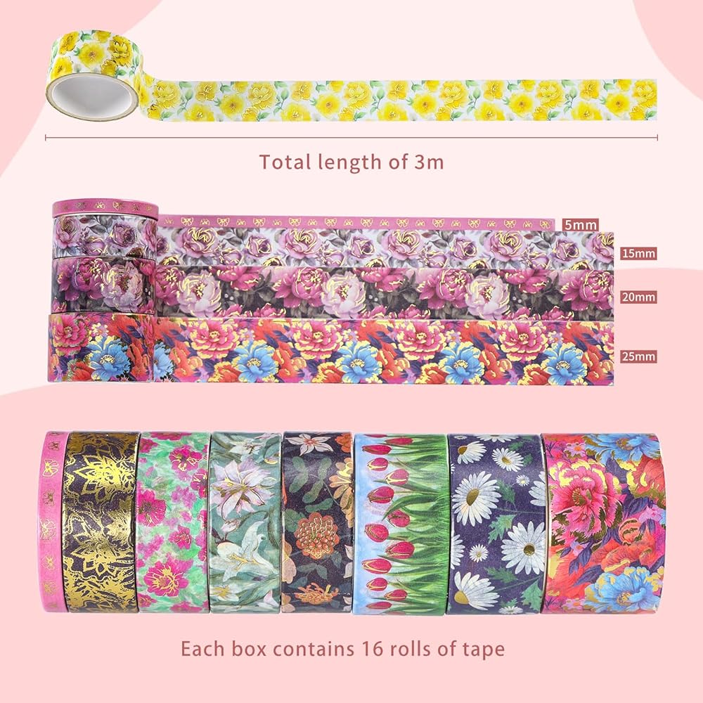The package includes: 16 rolls of Gold Foil Washi Tape