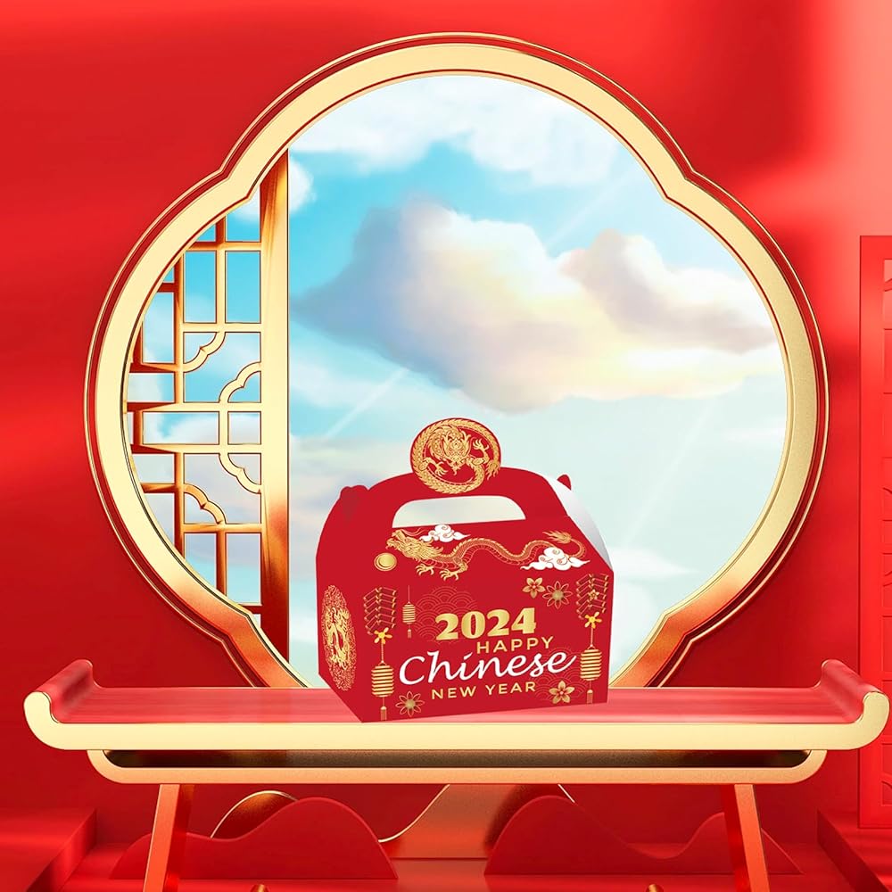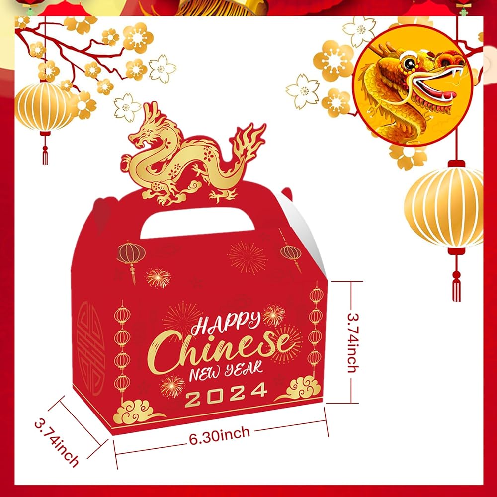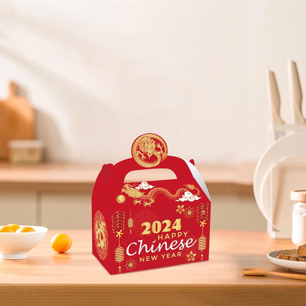 ايسوين 12 قطعة من صناديق هدايا السنة الصينية الجديدة 2024، صناديق هدايا ورقية للاحتفال بطابع عام التنين، علب حلوى لخبز الحلوى والخبز والبسكويت والكيك، صندوق تغليف هدايا تذكارية زودياك