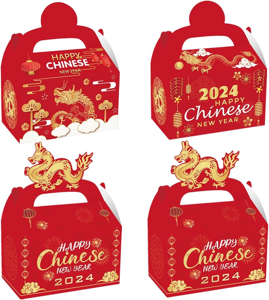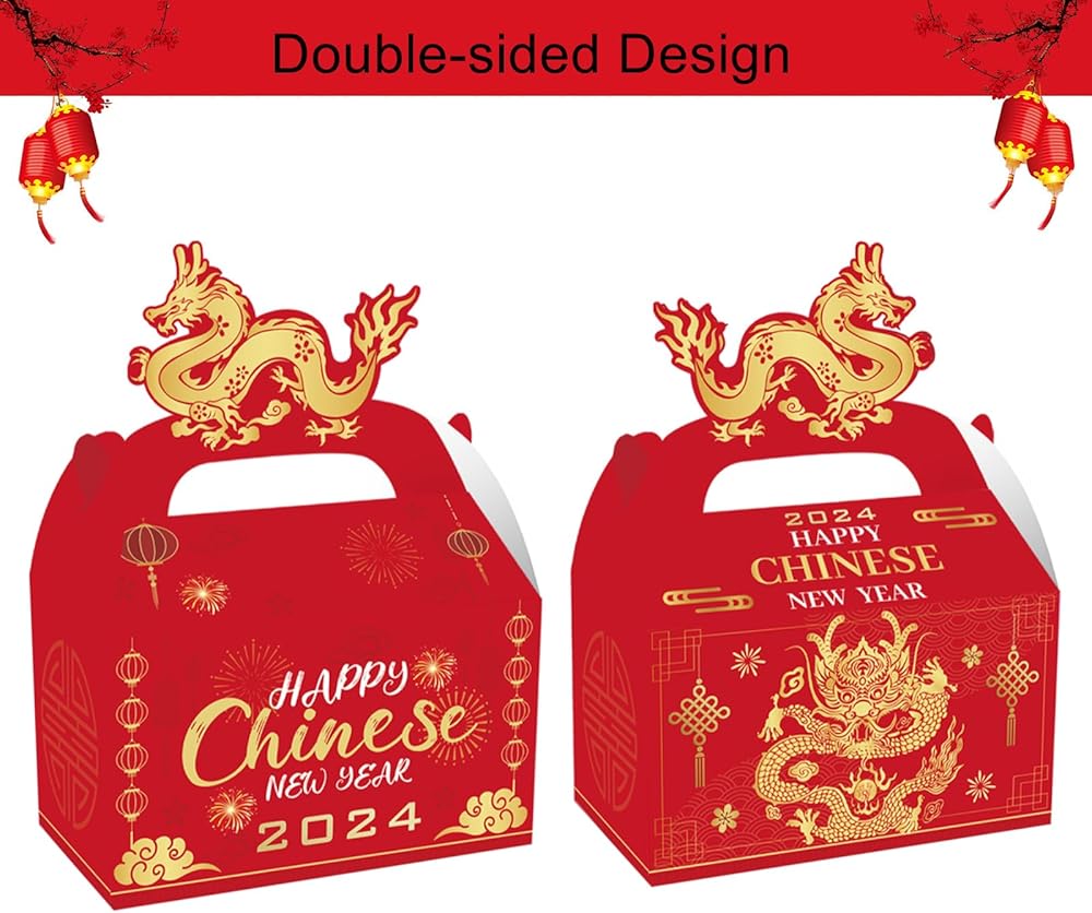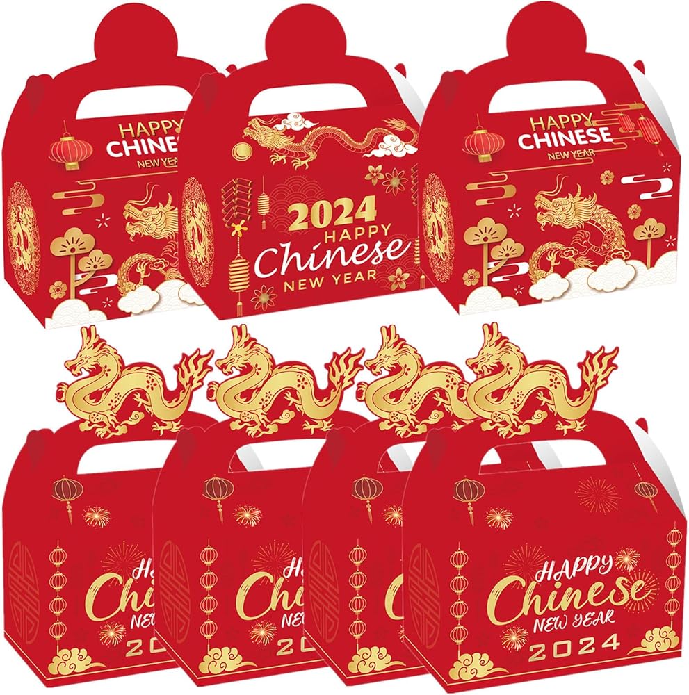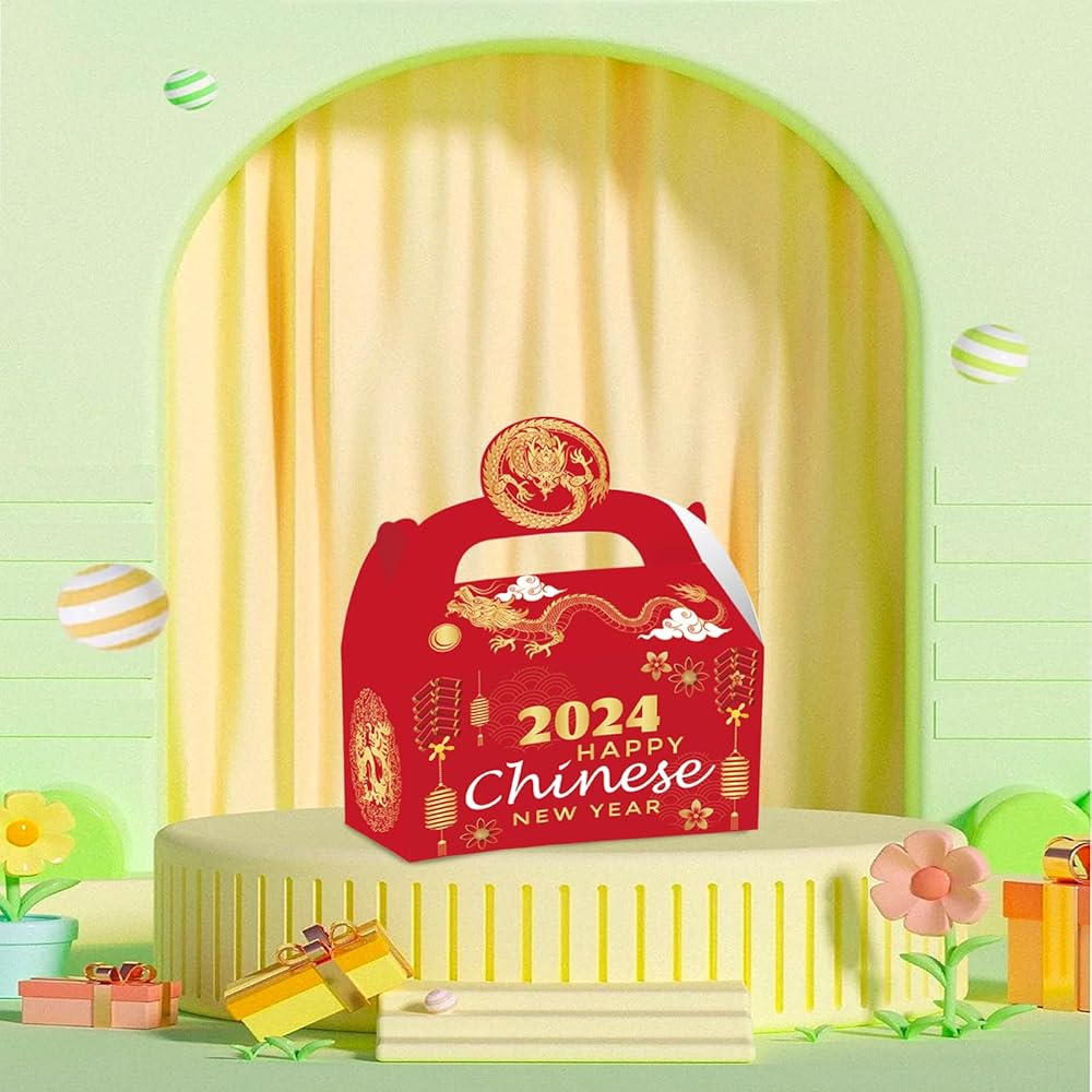 ايسوين 12 قطعة من صناديق هدايا السنة الصينية الجديدة 2024، صناديق هدايا ورقية للاحتفال بطابع عام التنين، علب حلوى لخبز الحلوى والخبز والبسكويت والكيك، صندوق تغليف هدايا تذكارية زودياك