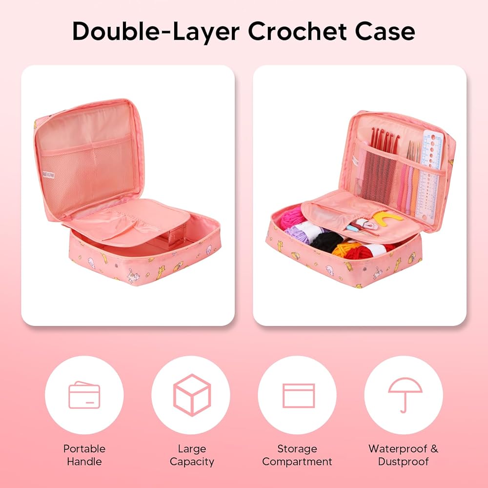 With Organizer Bag ------ The organizer bag can store all your crochet hooks and other accessories to keep them neatly organized and avoid losing them. The organizer bag also has small pockets and mesh compartments inside and a side handle for easy access. With this organizer bag, you can carry your crochet hooks and other accessories with you and crochet whenever you want.