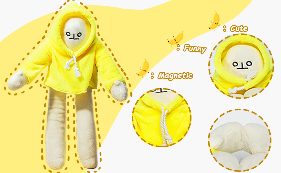 【ألعاب رجل دمية قطيفة لطيفة】دمية الموز اللطيفة الخاصة بنا ترتدي هودي أصفر اللون والساقين والذراعين مدمجة بسلك، كما أن راحة اليد بها مشبك مغناطيسي، يمكنك تغيير وضعية رجل الموز وفقًا لتفضيلاتك. ضعها في غرفة نومك أو غرفة معيشتك، أو علقها على الحقيبة واحملها معك، مما يجعلها أكثر جاذبية أثناء اللعب والنوم.