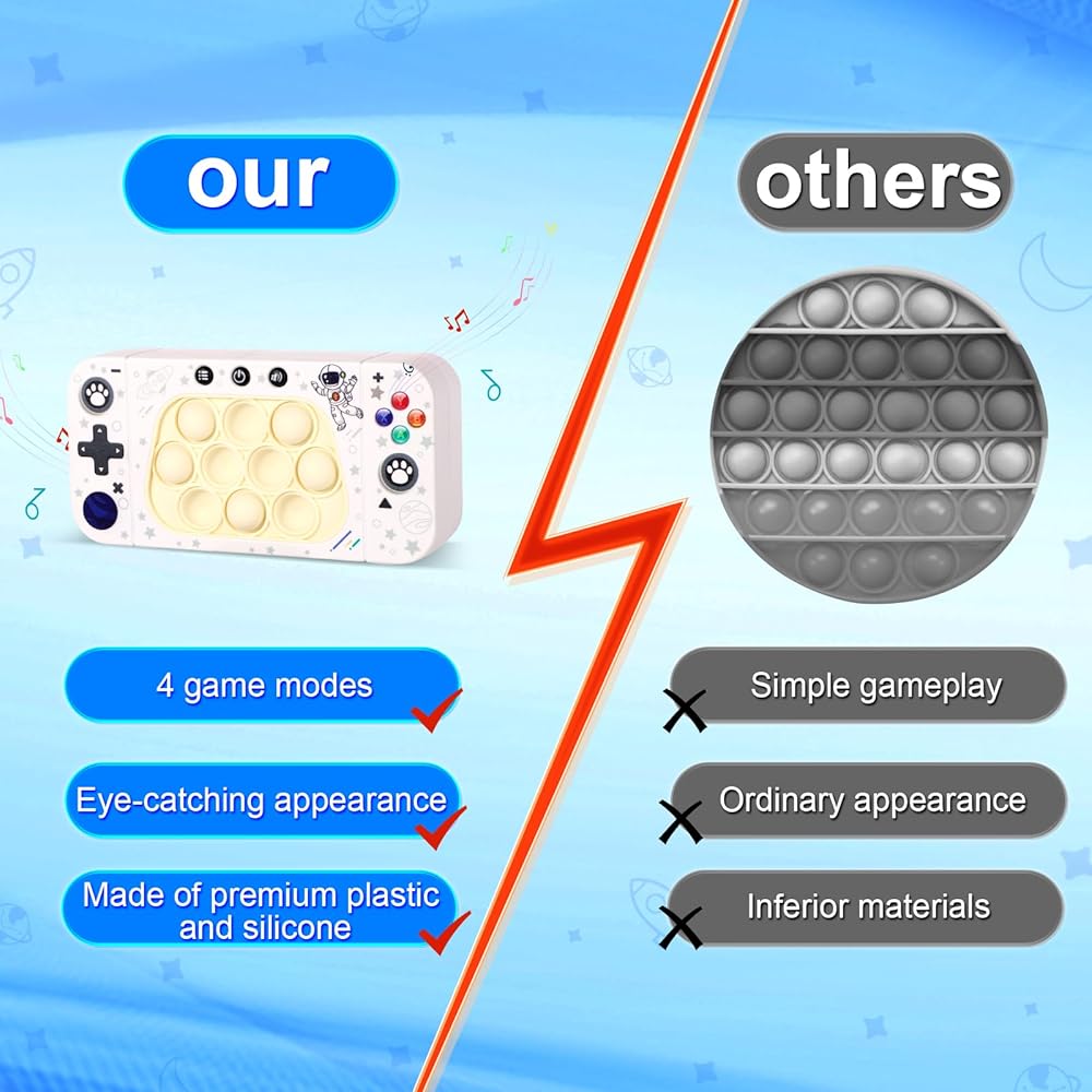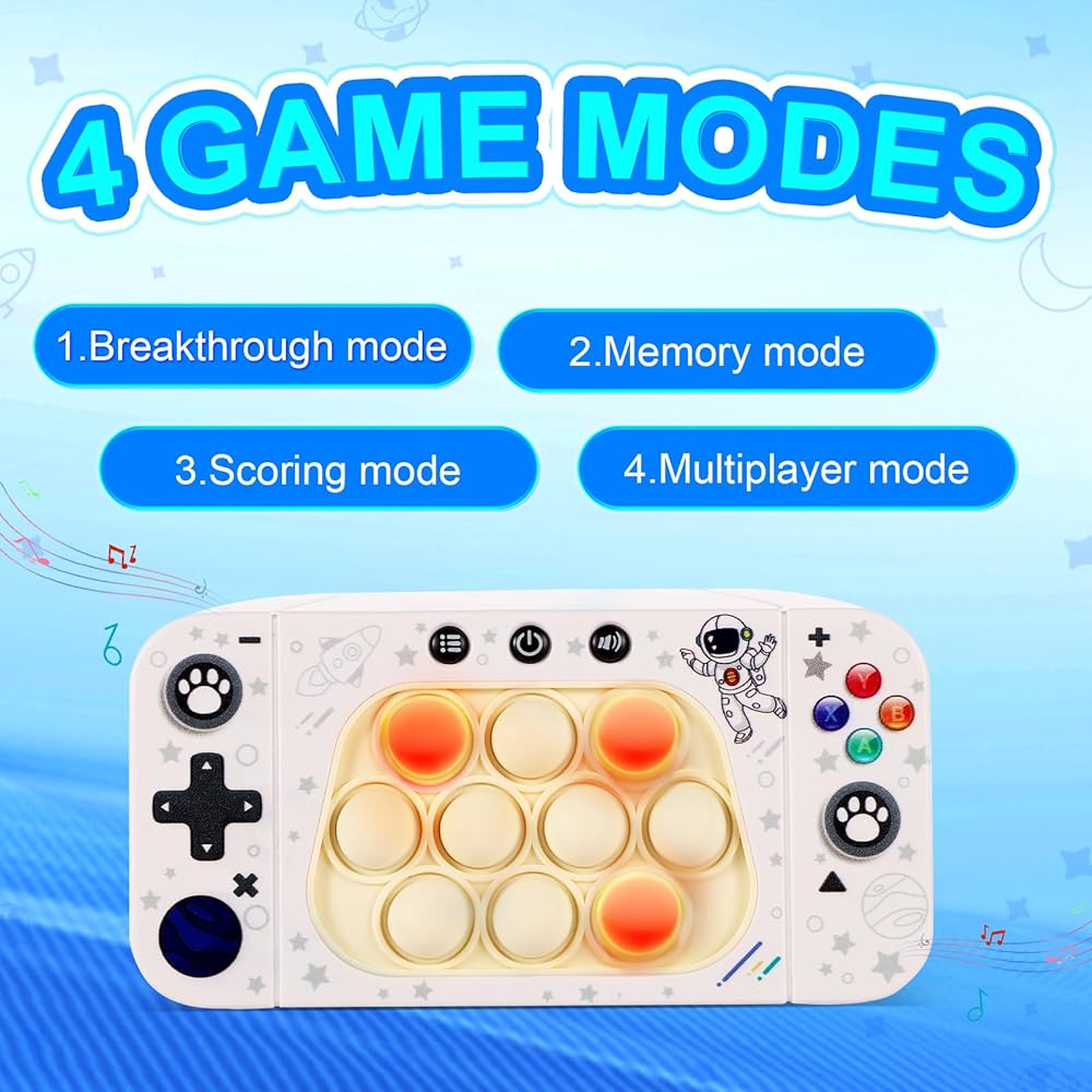 4 Models: This fidget toy is designed with 4 game modes, including breakthrough mode, memory mode, scoring mode and multiplayer mode, not only can you exercise your attention, reaction, hand-eye coordination, etc. During the game, but you can also bring in family or friends through the multiplayer mode The relationship between.