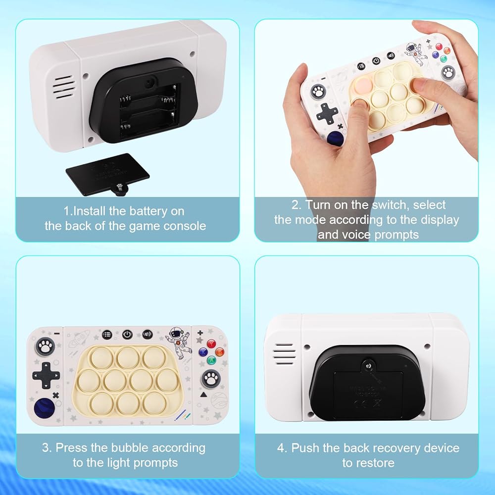 Premium Materials: Our light up game is made of premium plastic and silicone materials, reliable and not easy to break. It has a smooth appearance and a comfortable touch. You will feel comfortable even if you hold it for a long time. Just install the battery to start the push game (requires 3 AAA batteries) , not included in the scope of supply)