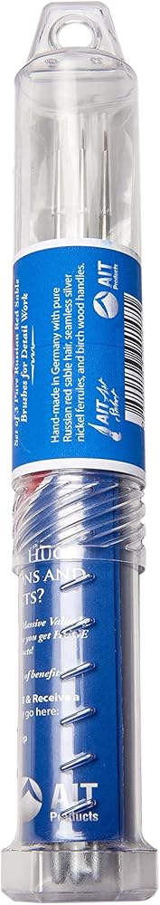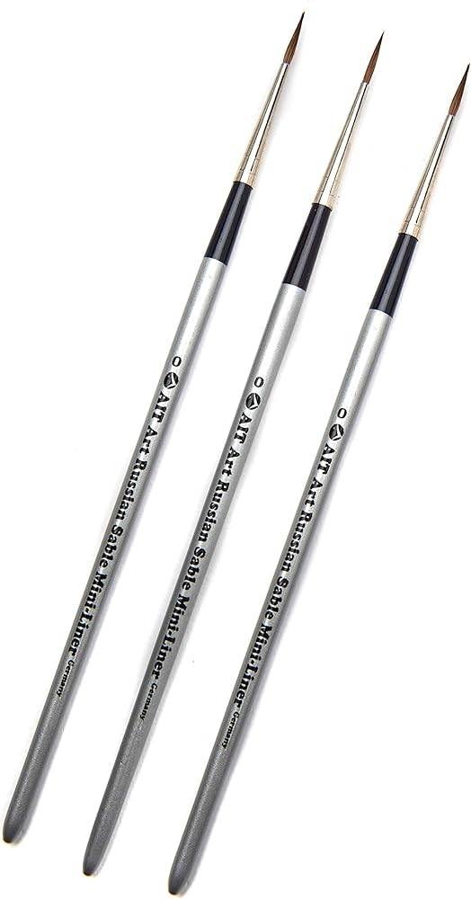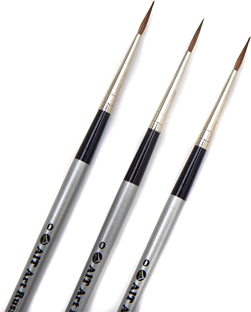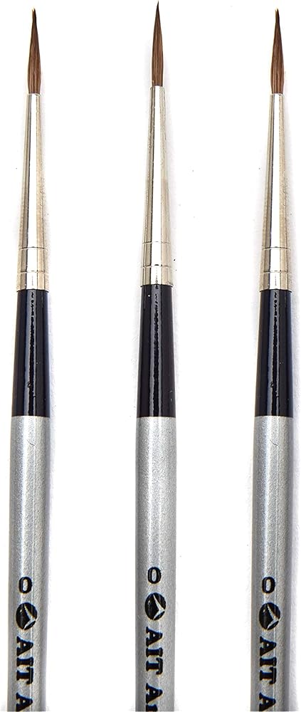 فرش طلاء بتفاصيل صغيرة من AIT Art Select، مقاس 0، حزمة من 3، سابل أحمر روسي نقي، مصنوعة يدويًا في ألمانيا لصياغة تفاصيل رائعة باستخدام الزيت أو الأكريليك أو الألوان المائية