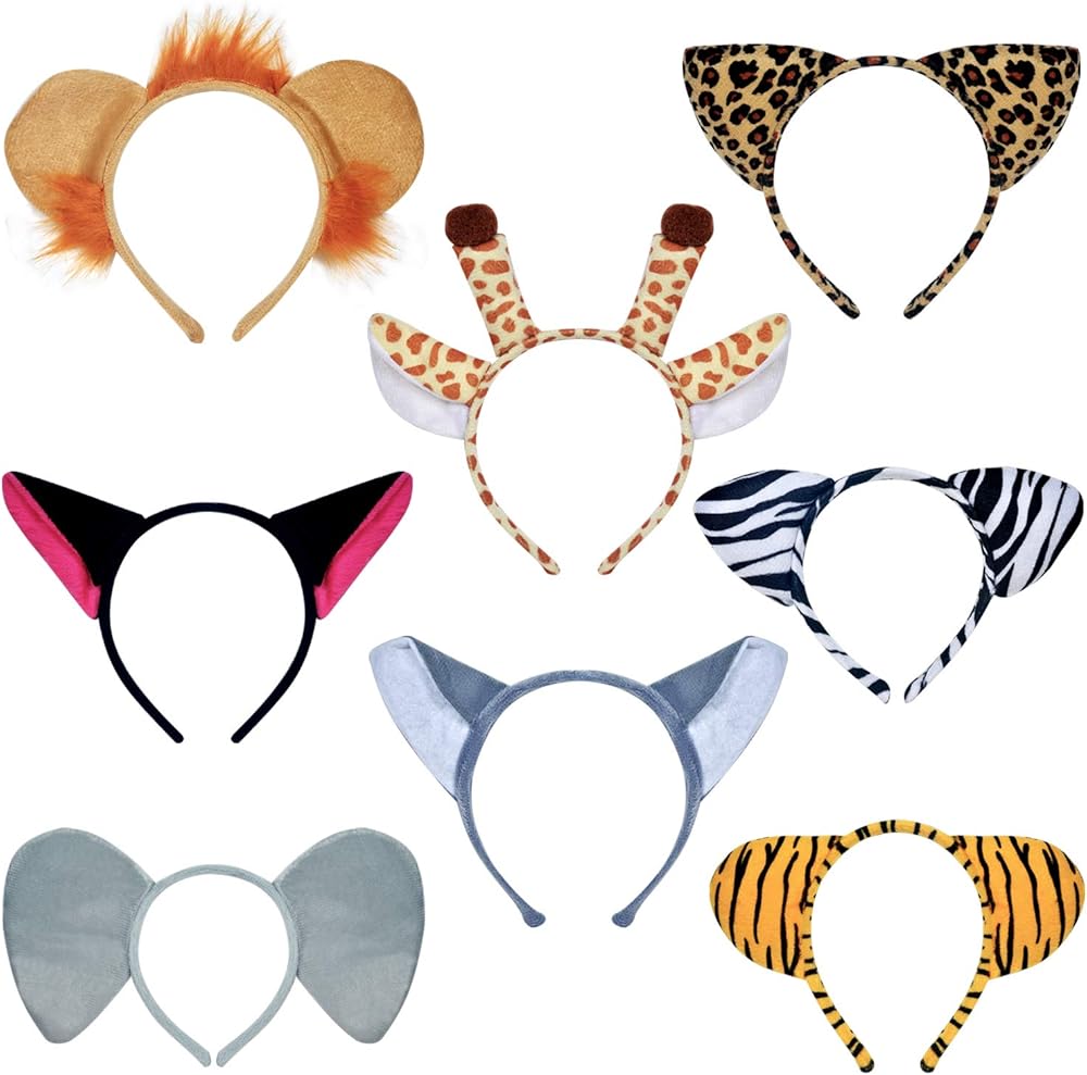 8 عصابات رأس حيوانات في الغابة سفاري حديقة حيوانات حيوانات حيوانات حيوانات حيوانات من القطيفة وأساور رأس كرتونية من القطيفة وإكسسوارات الشعر على شكل فيل وجرافات وحمار وحشي النمر والأسد على شكل نمر ثعلب ليوبارد