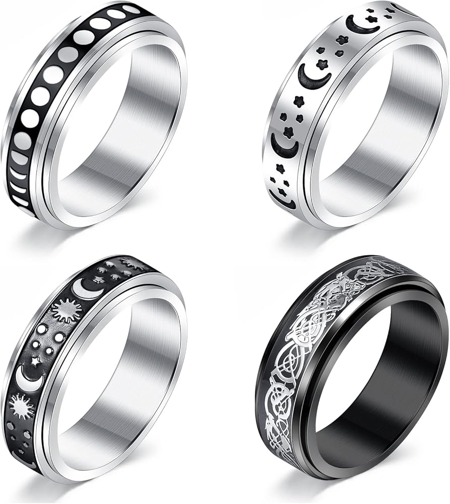 تشمل العبوة - خاتم القلق للنساء 4 قطع بألوان مختلفة؛