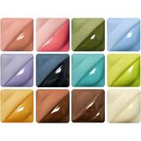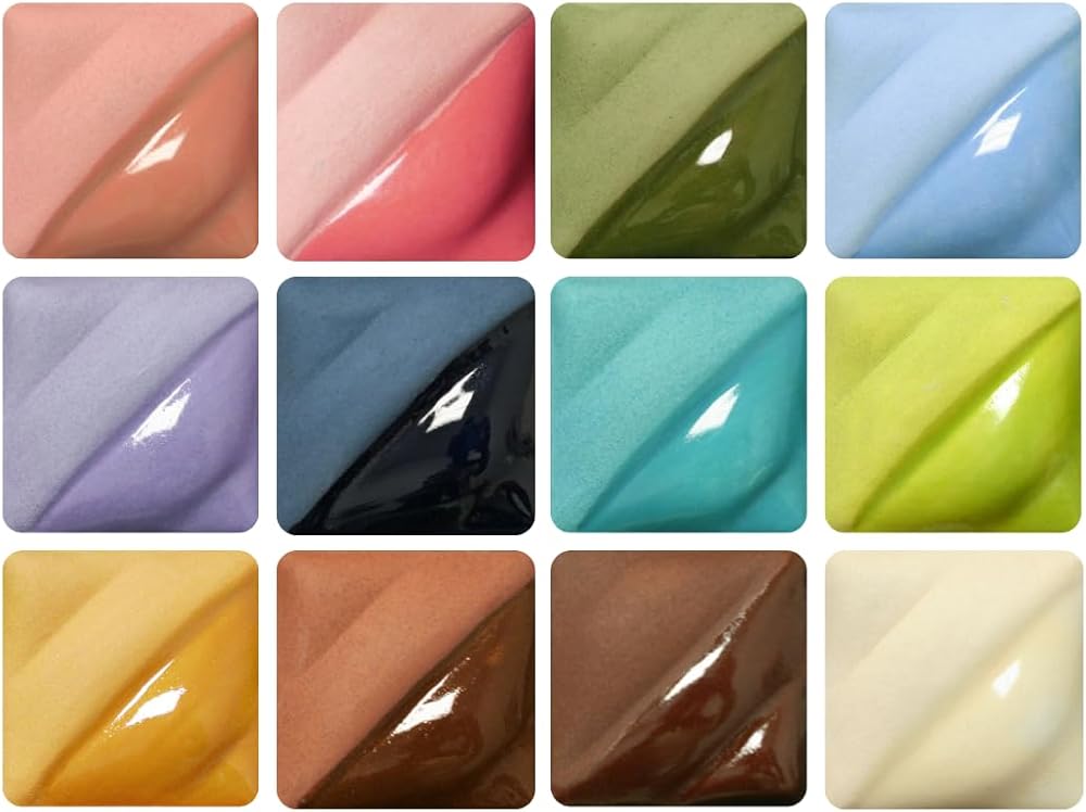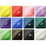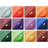 AMACO Velvet Underglaze Set fire true to and have the soft look of velour when unglazed. Glazes can be fired to cone 05/06 for detailed design work or up to cone 6 while maintaining their intensity and brightness. Glazes are intermixable for a variety of colors. Sprayable.