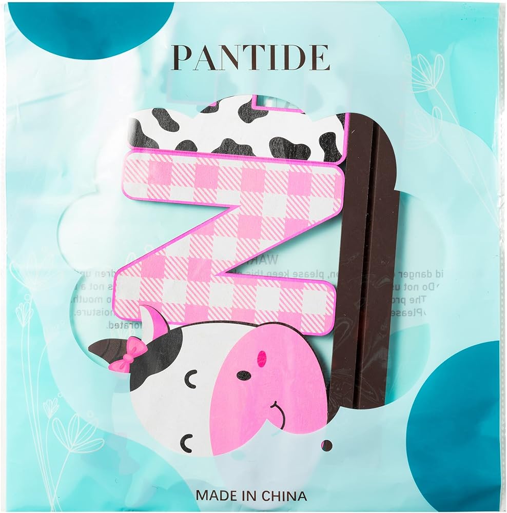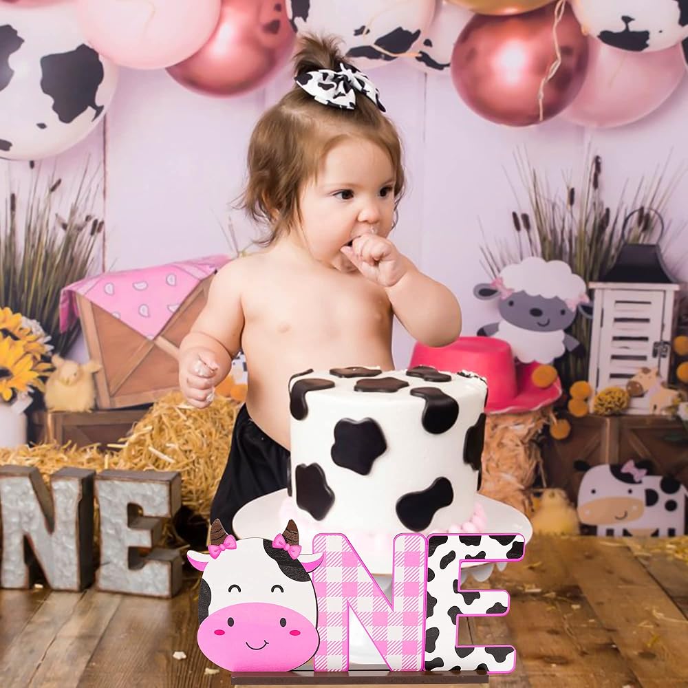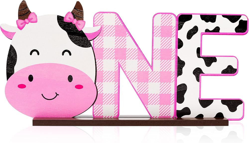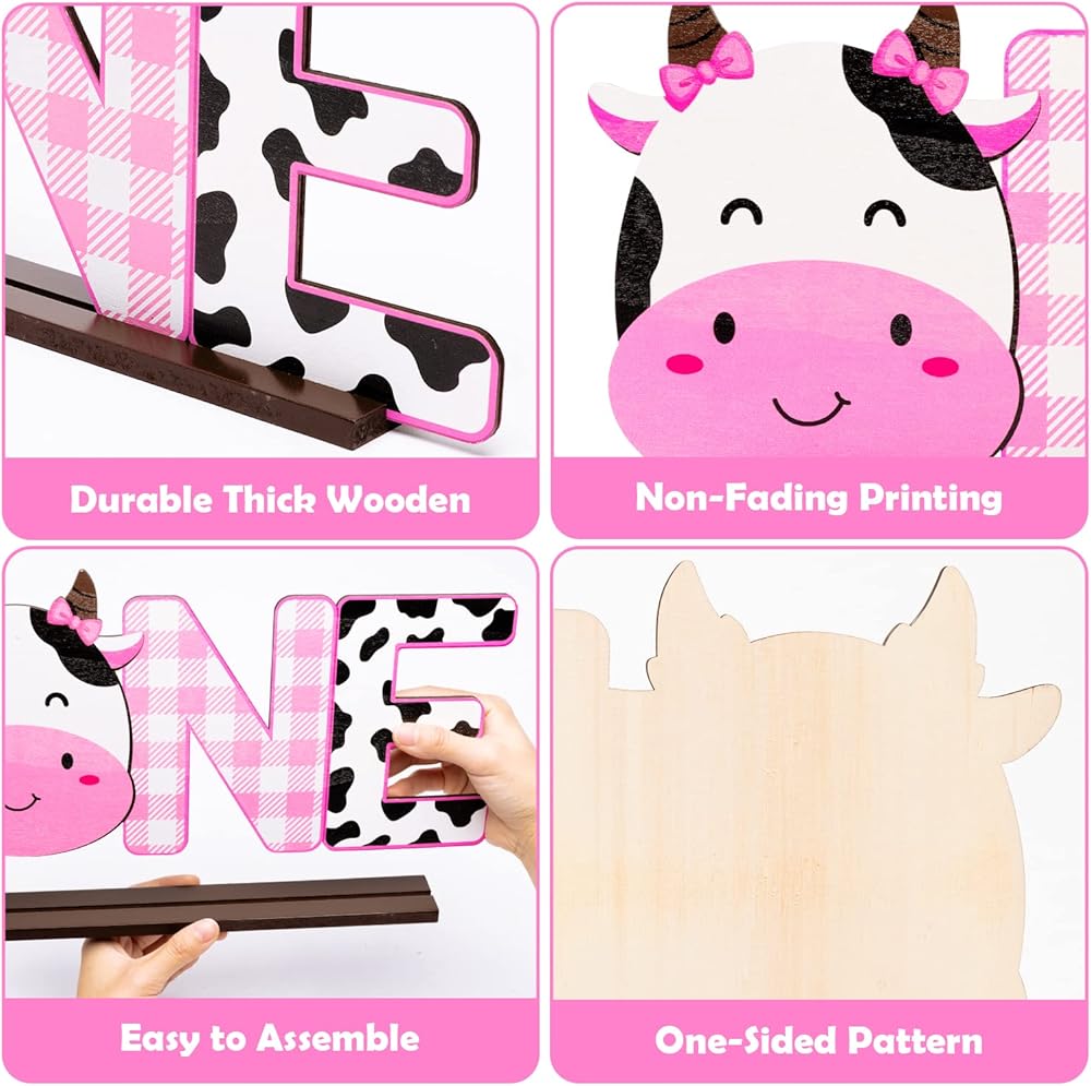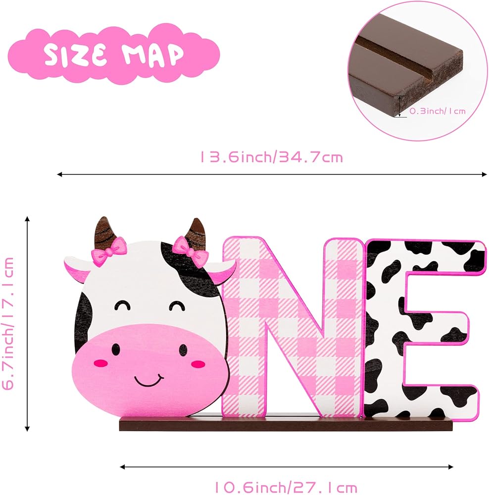 بانتايد لافتة خشبية على شكل بقرة وحرف واحد، قطعة مركزية للطاولة للبنات الصغيرات، ديكور عيد الميلاد الاول بتصميم بقرة بلون زهري، لوازم حفلات استقبال المولود الجديد، دعائم تصوير تحطيم الكيك