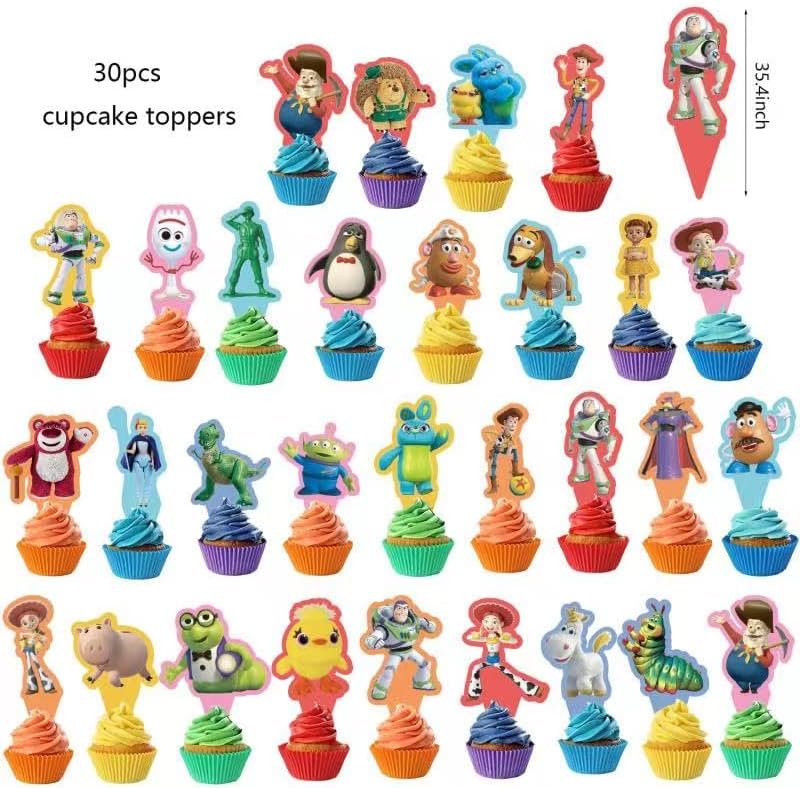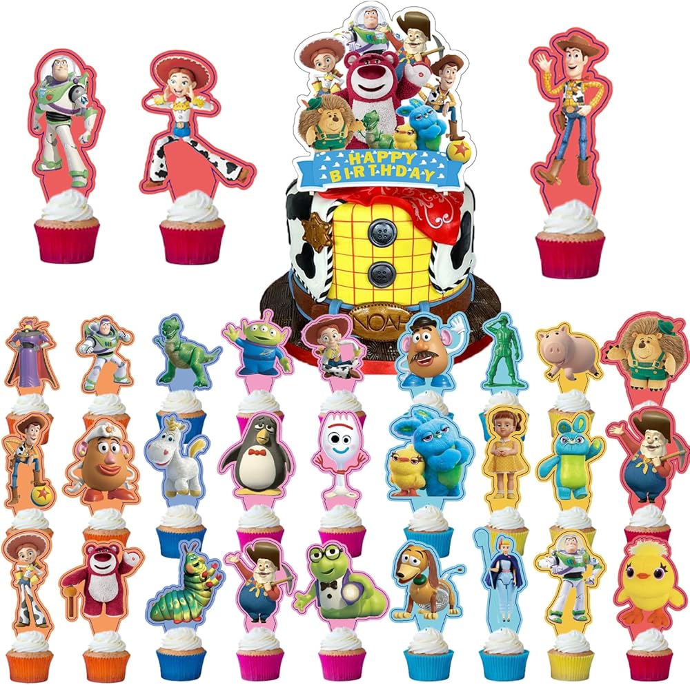 31 قطعة من قصة لعبة اللعبة قطعة واحدة من أعلى الكعك و30 قطعة من أغطية الكب كيك لمستلزمات تزيين الكيك في حفلات أعياد الميلاد