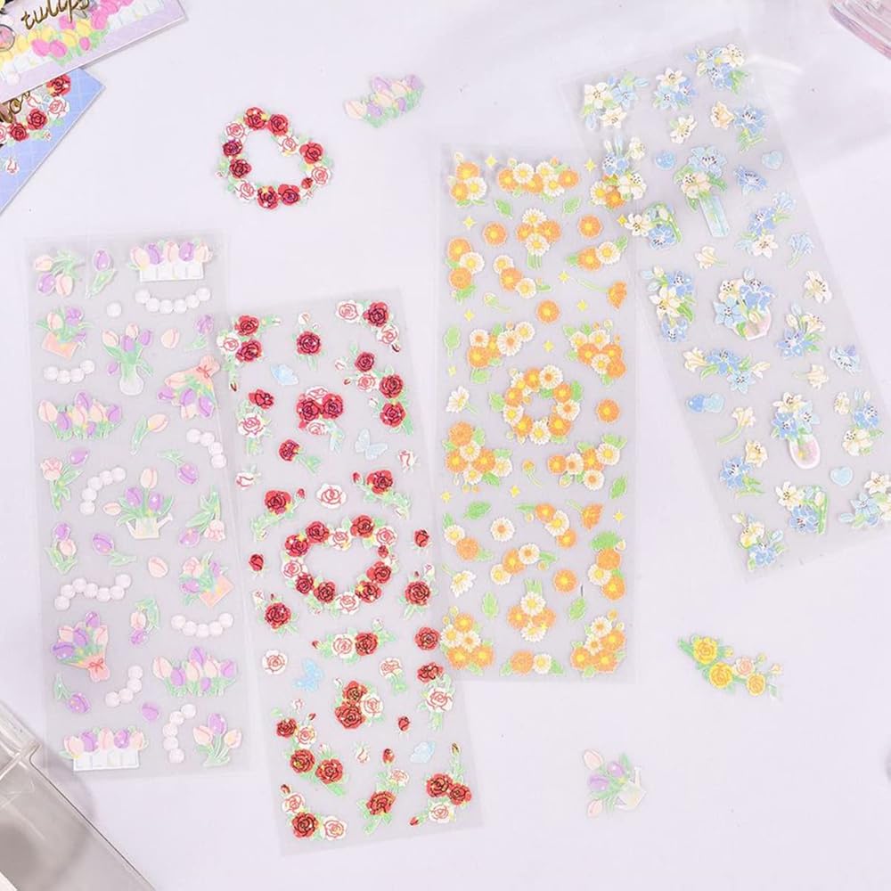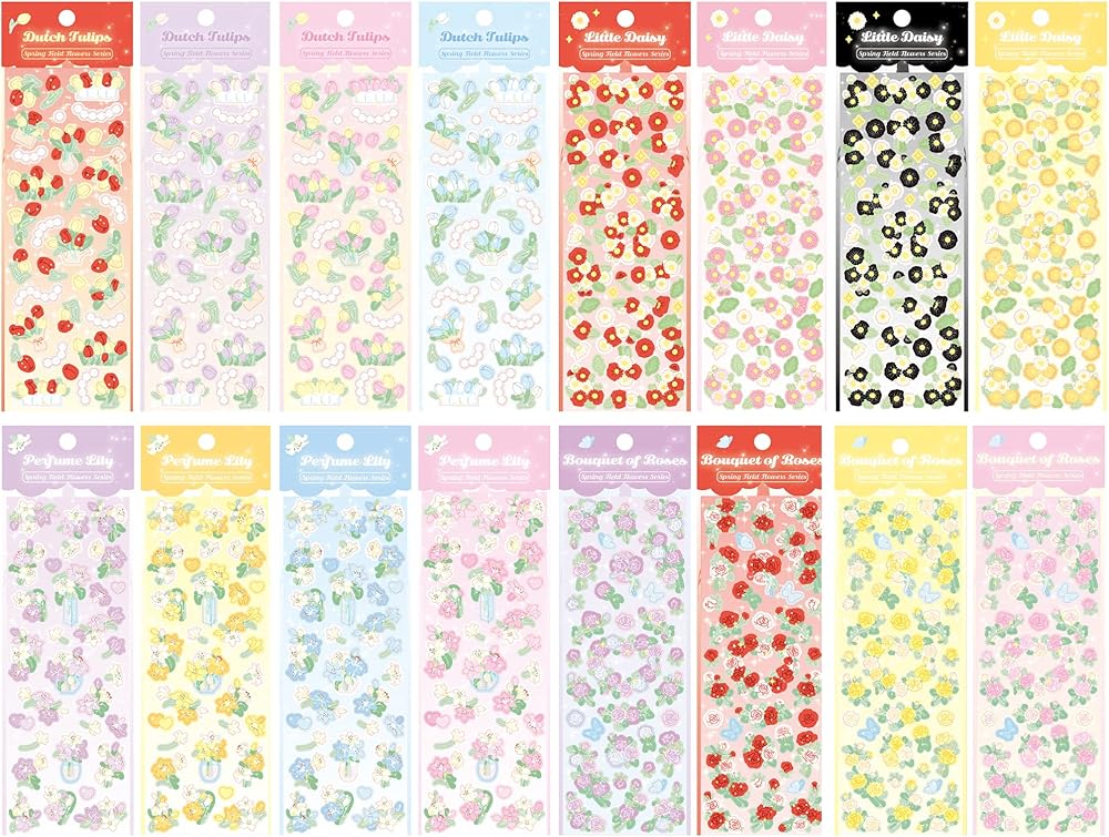 🌼Package Includes: This set of 16 colorful flower stickers is perfect for adding a touch of glamour to any project. the stickers feature lovely designs of roses, lilies, daisies, and tulips.