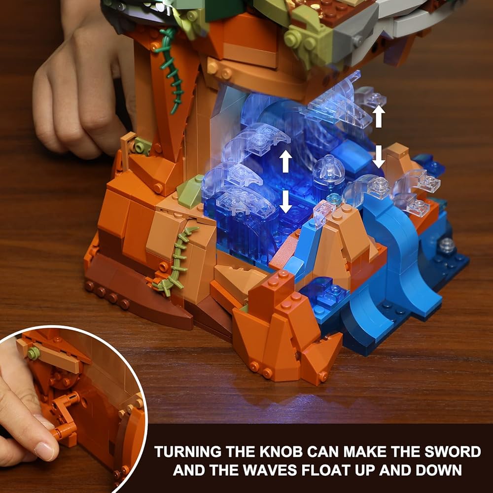 تصميم إبداعي مدهش: تحويل المقبض خلف قاعدة المنحدر يمكن أن يجعل السيف في الحجر والأمواج أسفل الجرف تطفو لأعلى وأسفل. مع الإضاءة الرائعة، يتم عرض مشهد الأمواج التي تلتف على الجرف بشكل واضح.