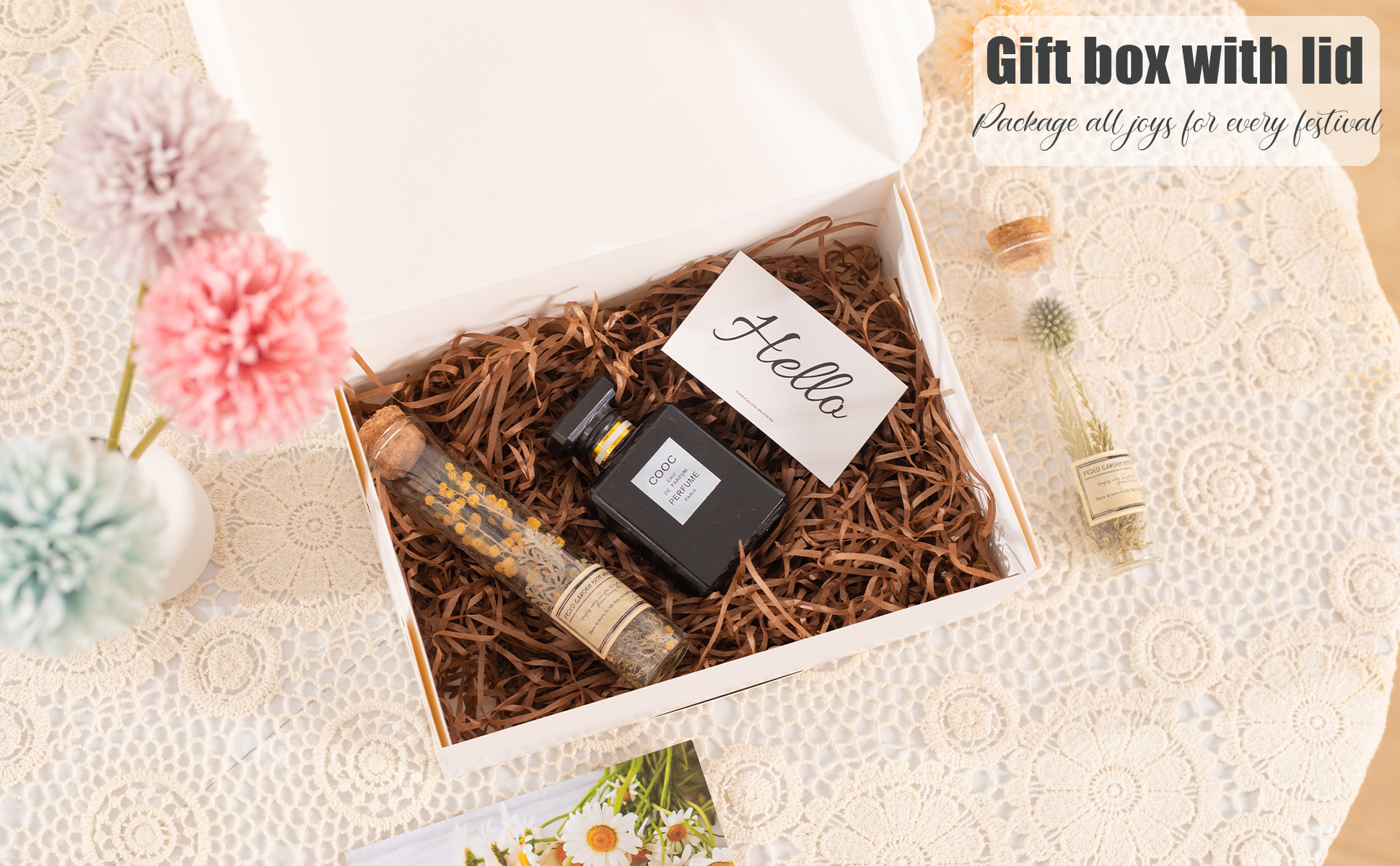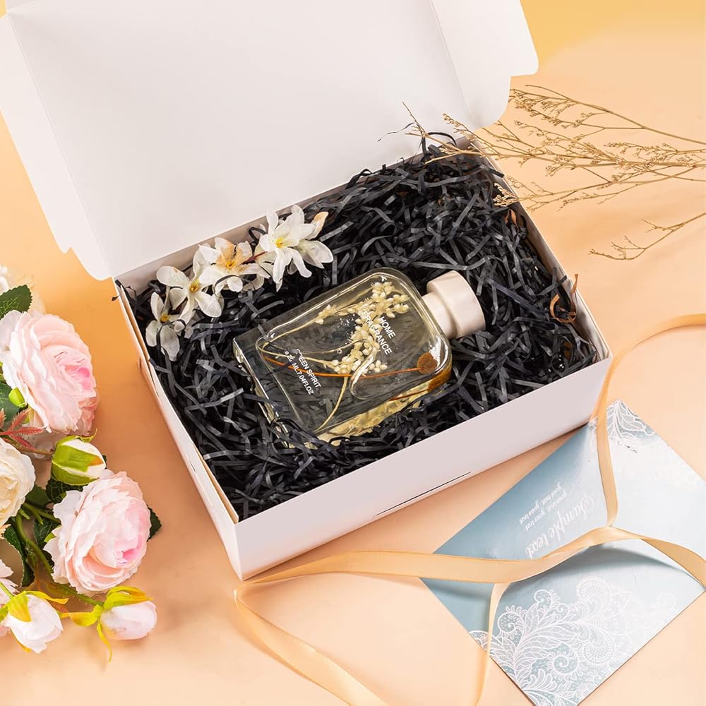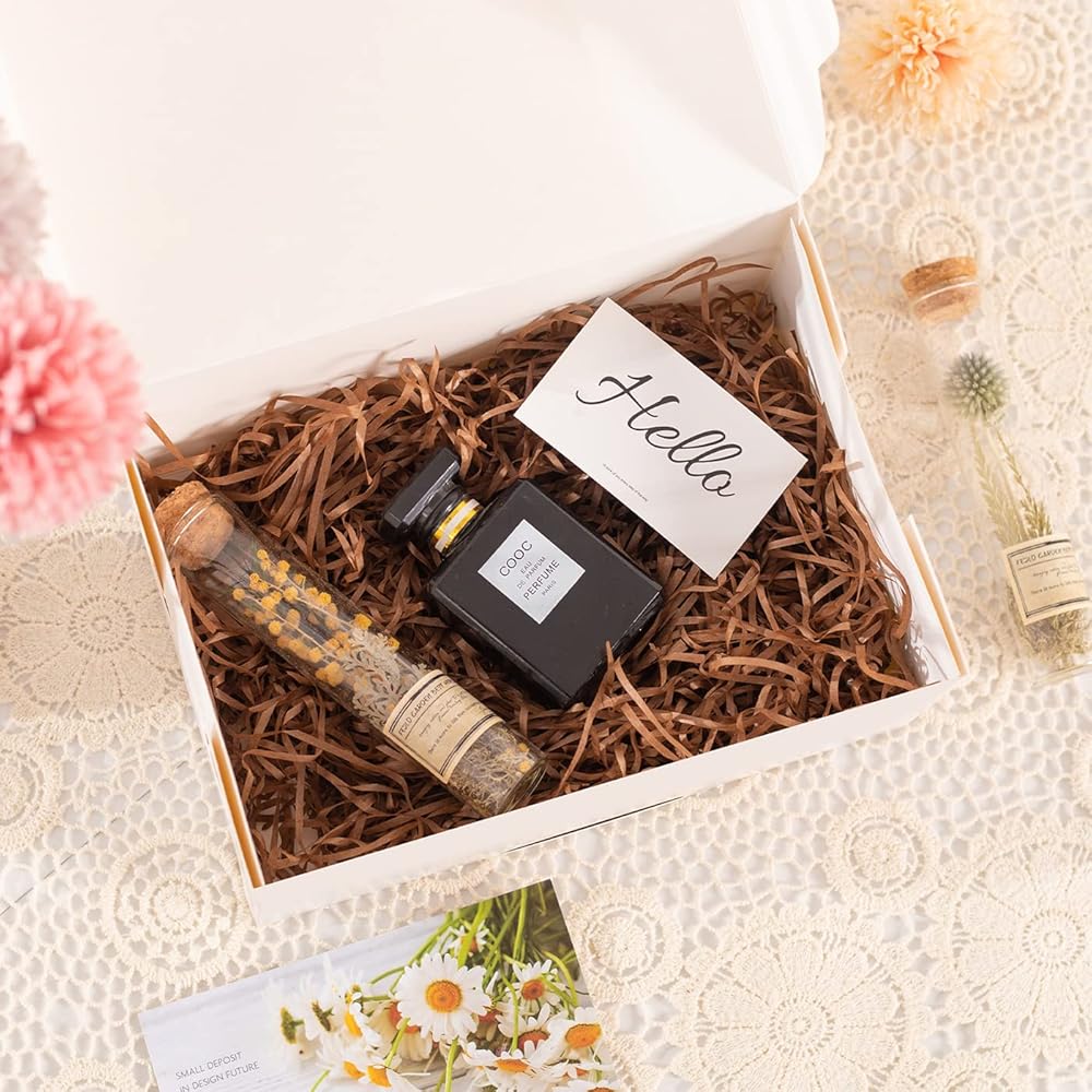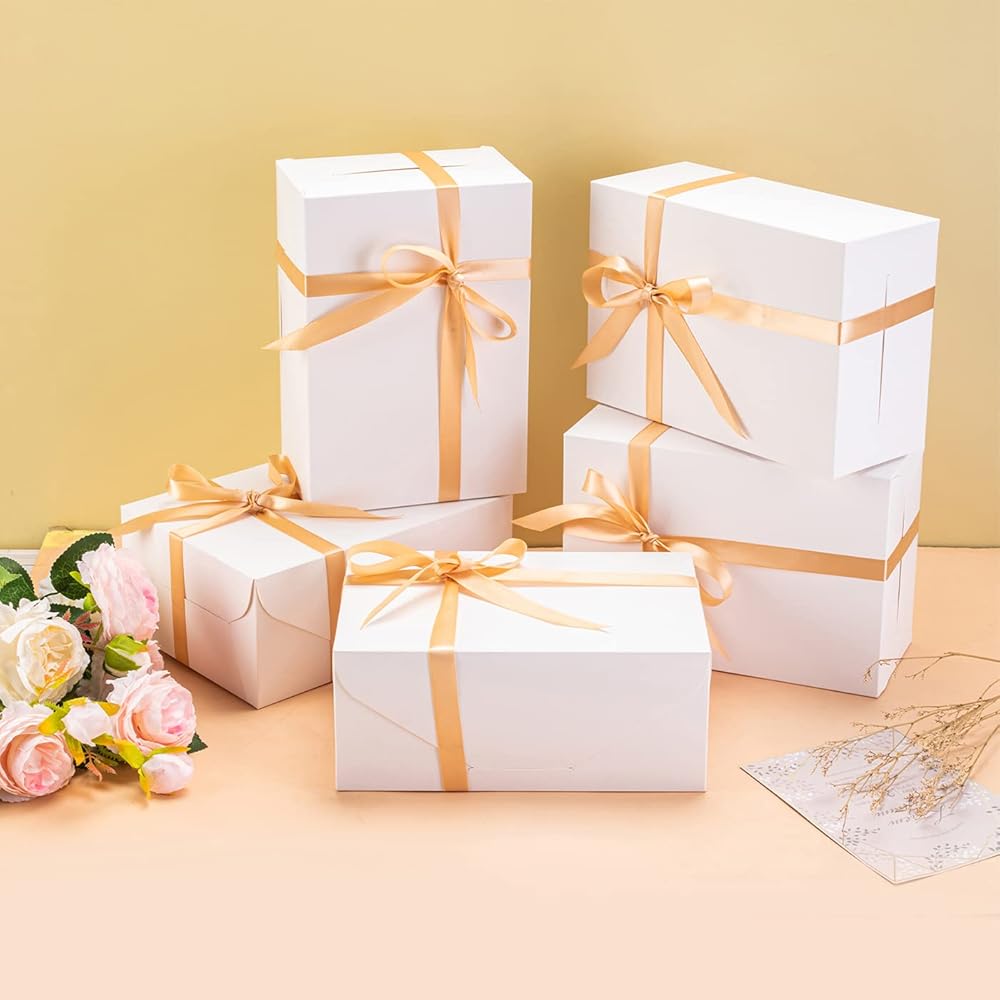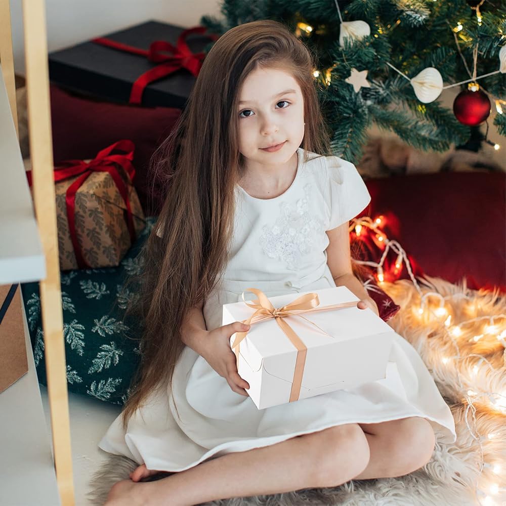 • صندوق هدايا لطيف أبيض مع شريط ذهبي، بسيط وأنيق، سيمنح أصدقائك بالتأكيد شعورًا فاخرًا ومريحًا
