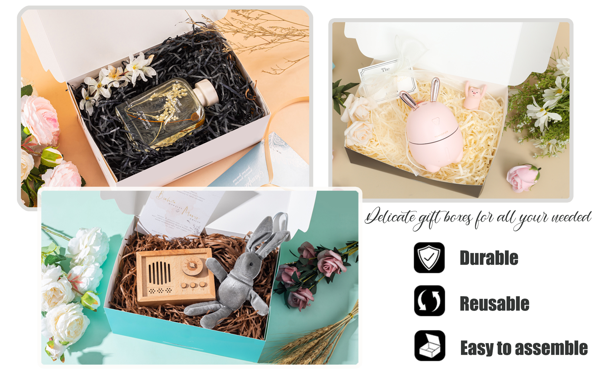 • صندوق هدايا كبير لتصنعه بنفسك أطلق العنان لإبداعك. يمكنك استخدام القلم لكتابة مباركاتك أو تصميم ما تريده خارج صناديق تغليف الهدايا. التصميم الفريد سيجعل أصدقائك متحمسين للهدية التي هم على وشك تلقيها وسيشعرون بإخلاصك وإعجابك!