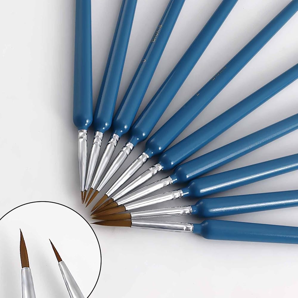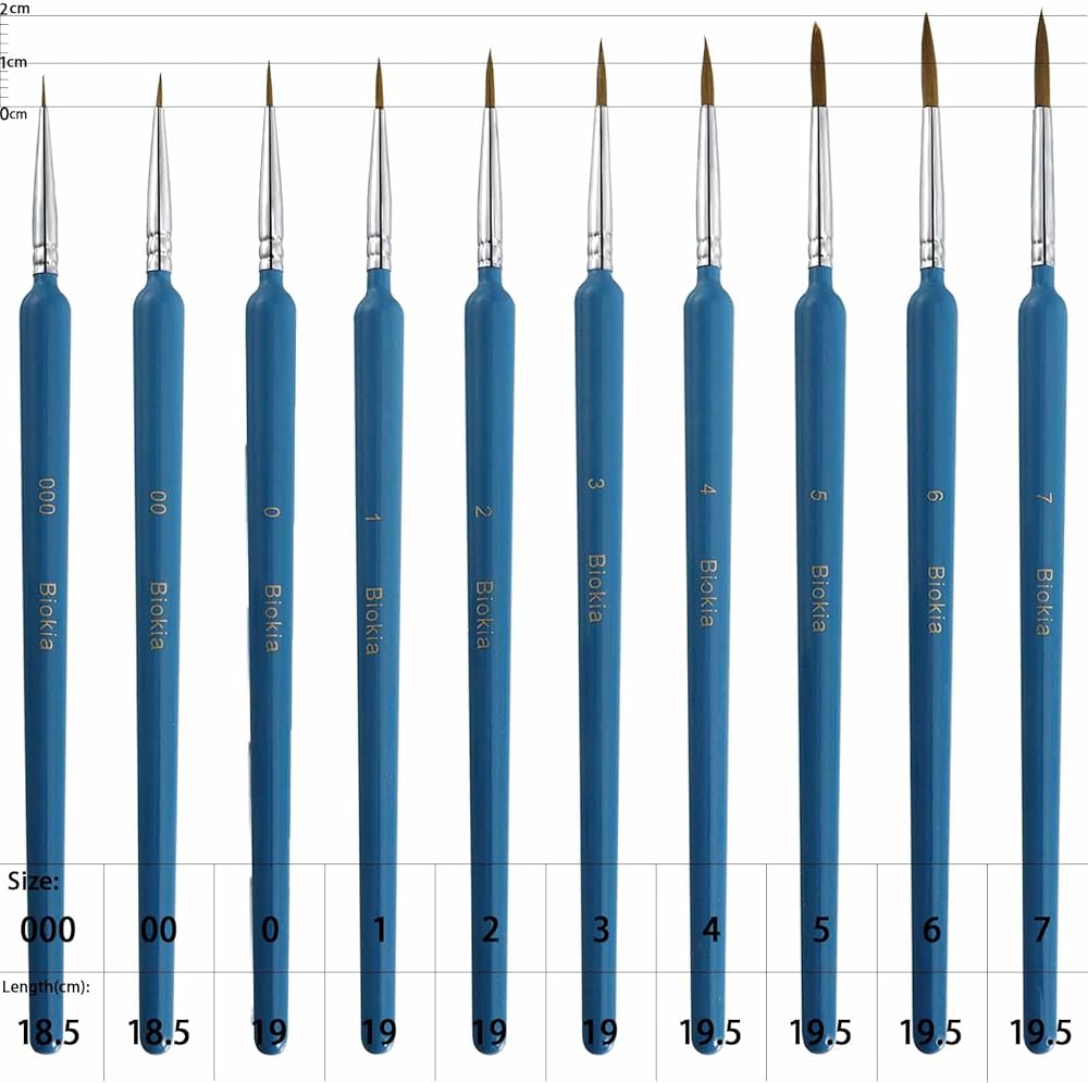 【فرشاة طلاء ممتازة】- توفر هذه المجموعة من فرش التفاصيل فرشاة طلاء صغيرة مثالية لكل مرحلة من جميع مشاريع الرسم الفنية الخاصة بك، وتأكد من حصولك دائمًا على فرشاة الطلاء المناسبة لهذه المهمة. تتضمن مجموعة فرش الطلاء التفصيلية 10 قطع فرشاة تفاصيل متنوعة. بحجم 000،00،0،1،2،3،4،5،6،7.