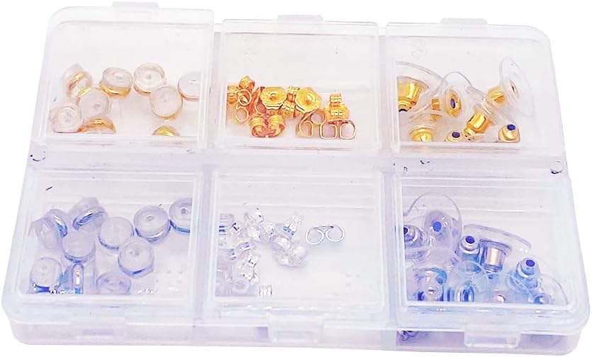 - This little box set has 3 different kinds of earring backs. Comes in both gold and silver tone.