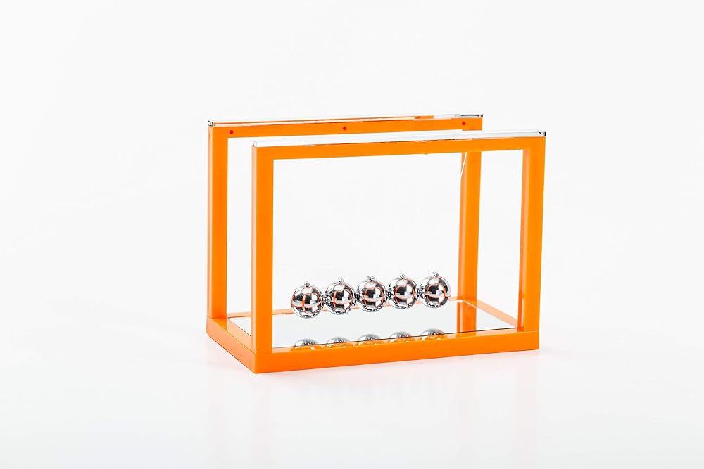 Who knew the conservation of momentum and kinetic energy could be this fun? Sir isaac, of course. This newtons cradle with mirror desktop display piece has become a must have for office décor. Swing one steel marble back, let it go and watch as kinetic energy causes the one on the opposite side to swing the same distance. If you're feeling saucy one day, try swinging two or three at once just don't pass out from the excitement. This desktop display model is a version of newton's cradle, a device that demonstrates conservation of momentum and energy via a series of identically sized swinging spheres. When one ball on the end is lifted and released, the resulting force travels through the line and pushes the last ball upward. Because it uses newton's laws, it was named after sir ISAAC newton, english physicist, mathematician and astronomer, but was actually "invented" (brought into commercial application) in 1967 by english actor simon prebble.