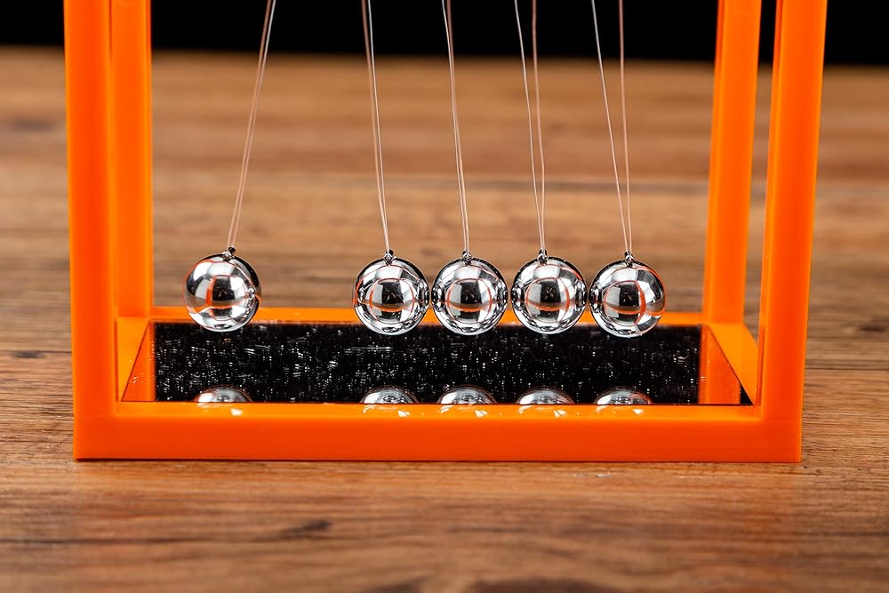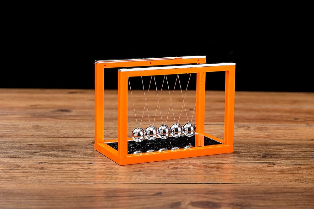 GREAT DECOR PIECE: Desktop display version of Newton's cradle performing based on Newton's Law. Made with technology that gives the balls perfect alignment so you will never have to worry about the strings becoming tangled and looking messed up.