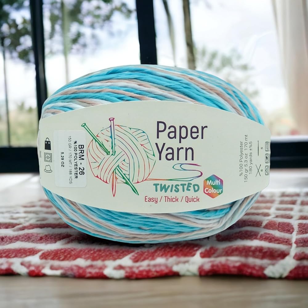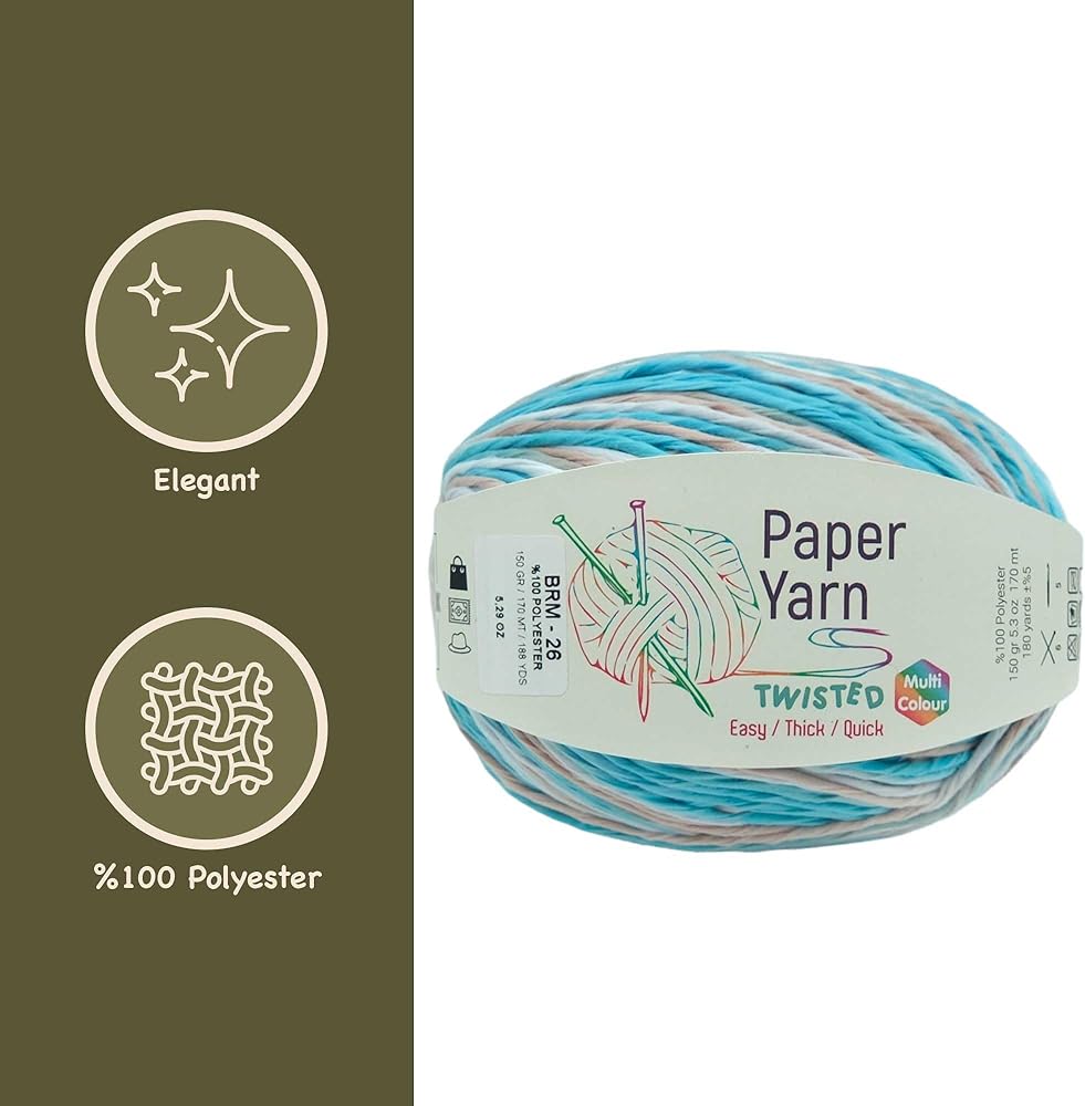غزل الرافية الورقي الملتوي متعدد الألوان (نمط ملون) 1 خصلة من ورق الكرافت غزل الرافية غزل ناعم بشريط من البوليستر لنسيج الكروشيه DIY - الطول الإجمالي 170 مترًا (180 ياردة 150 جرامًا)