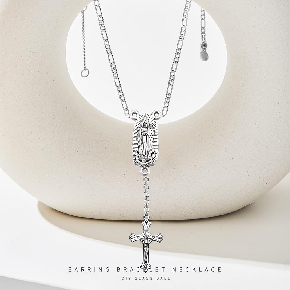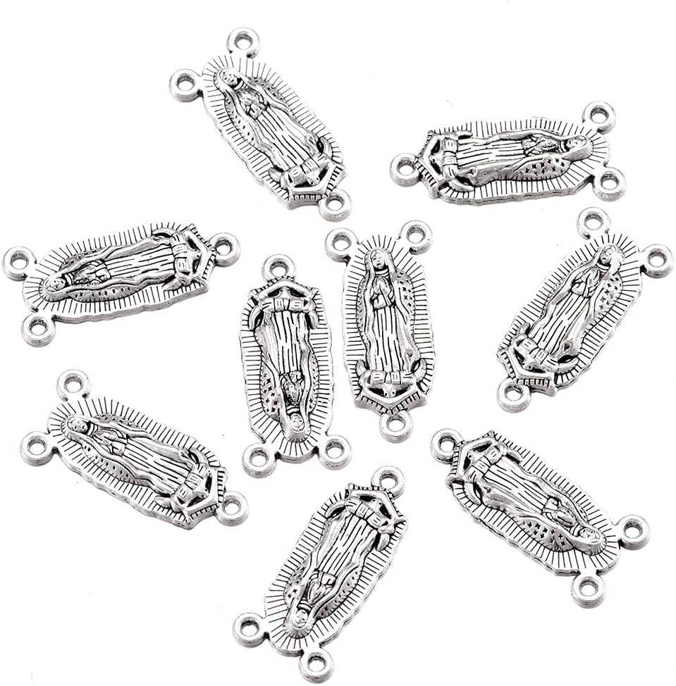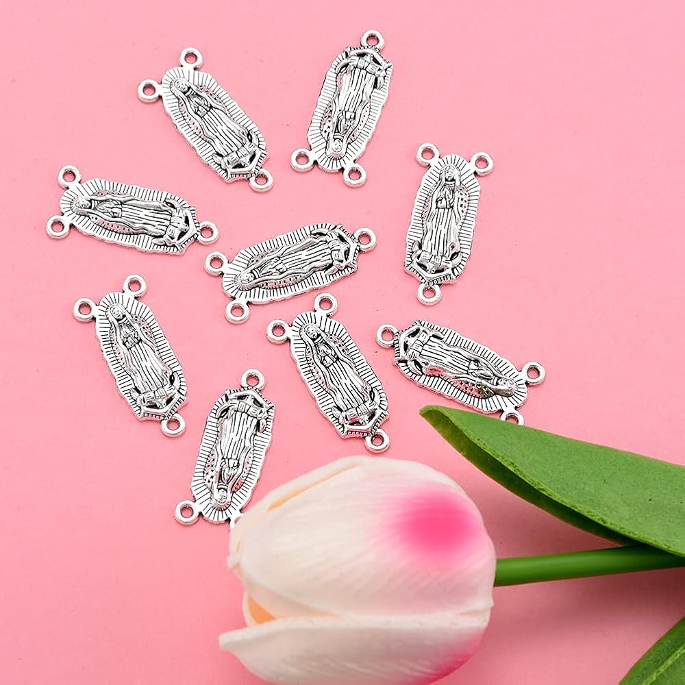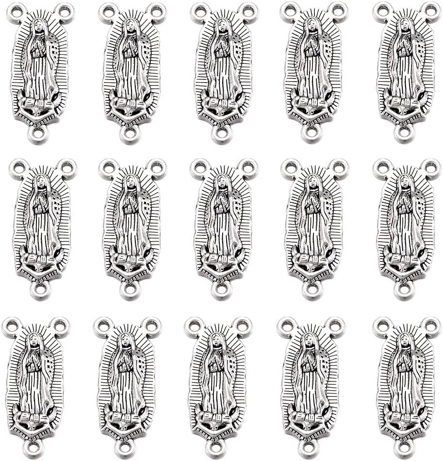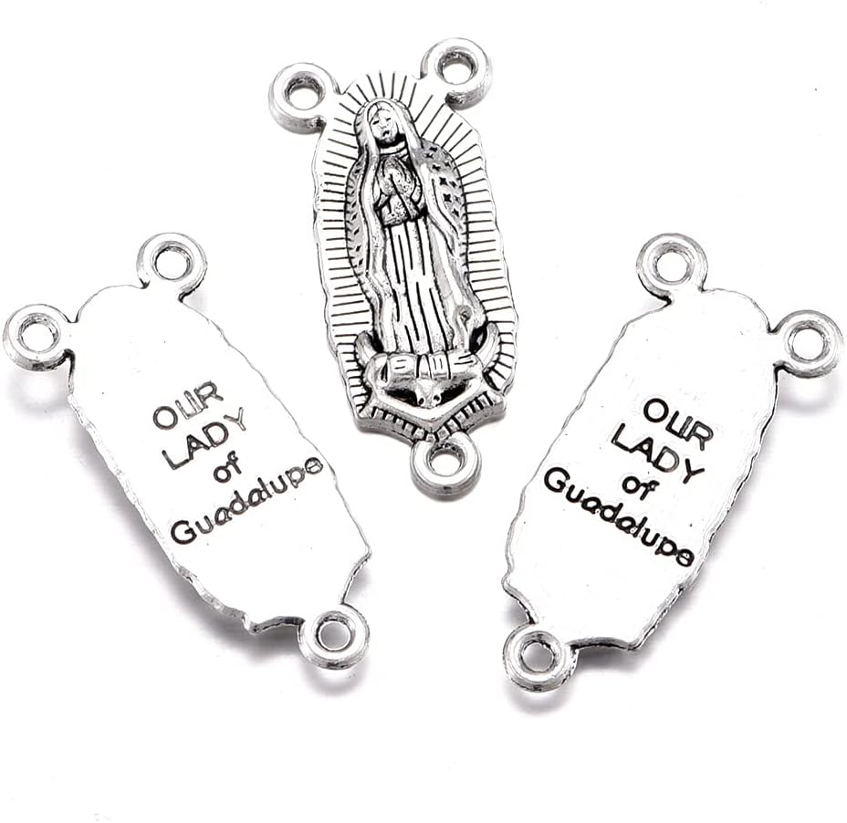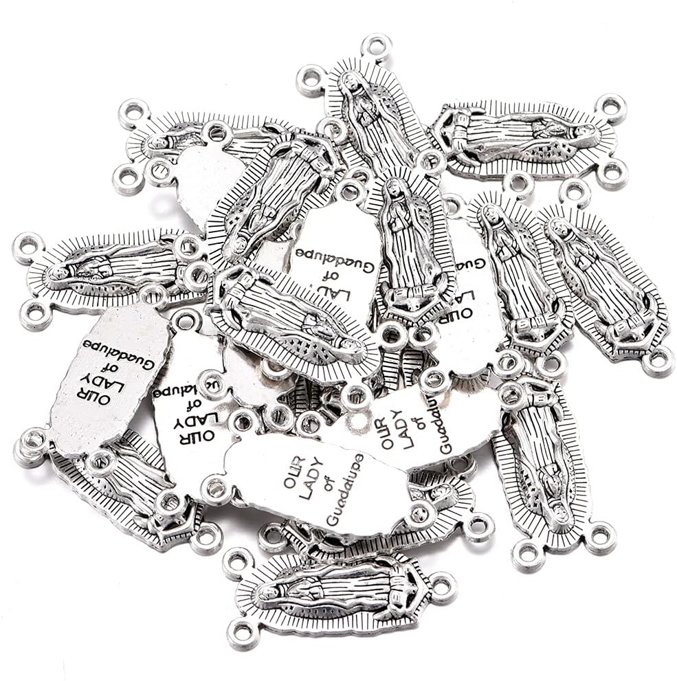 40Pcs Religion Jesus Maria Our Lady Of Guadalupe Miraculous Medal Connector Cross Crucifix Rosary Centerpiece Pendants Antique Silver Alloy Charm For Jewelry Making DIY Bracelet Necklace Earrings