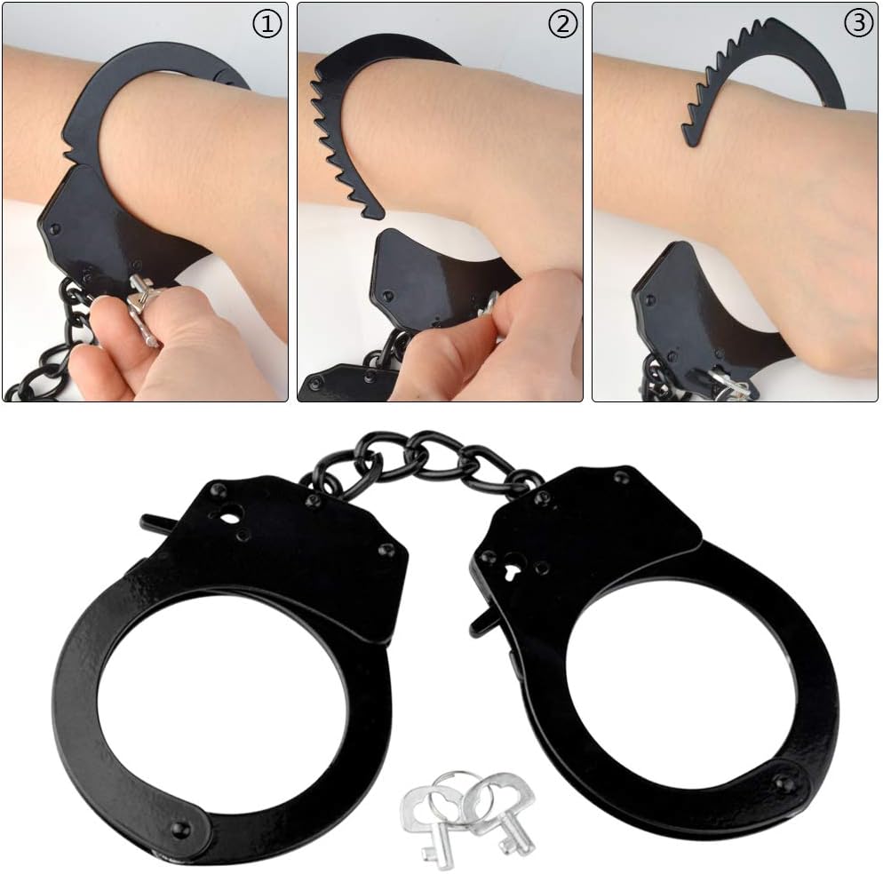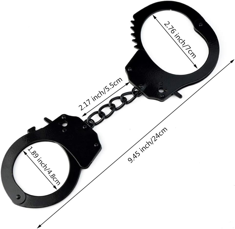 Package Quantity: Item comes 2pcs metal handcuffs in black and 2pcs matchable keys in sliver, suitable for kids police cosplay.