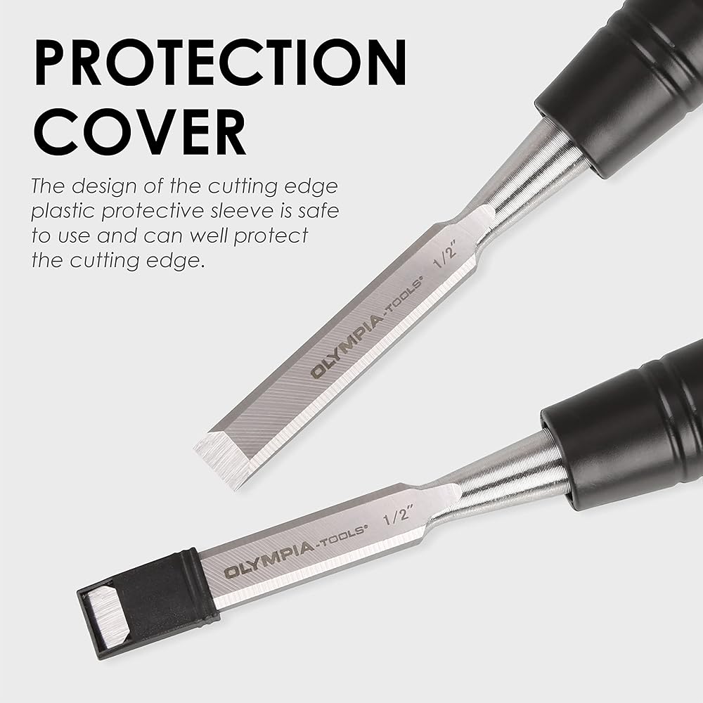 WOOD CHISEL: Enjoy all sorts of woodwork projects with this chisel, featuring a 1.5" regular pattern blade made of hardened & tempered drop forged alloy steel with edge protector cap.