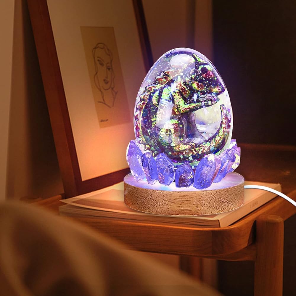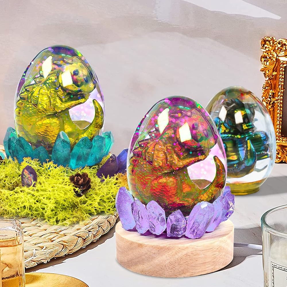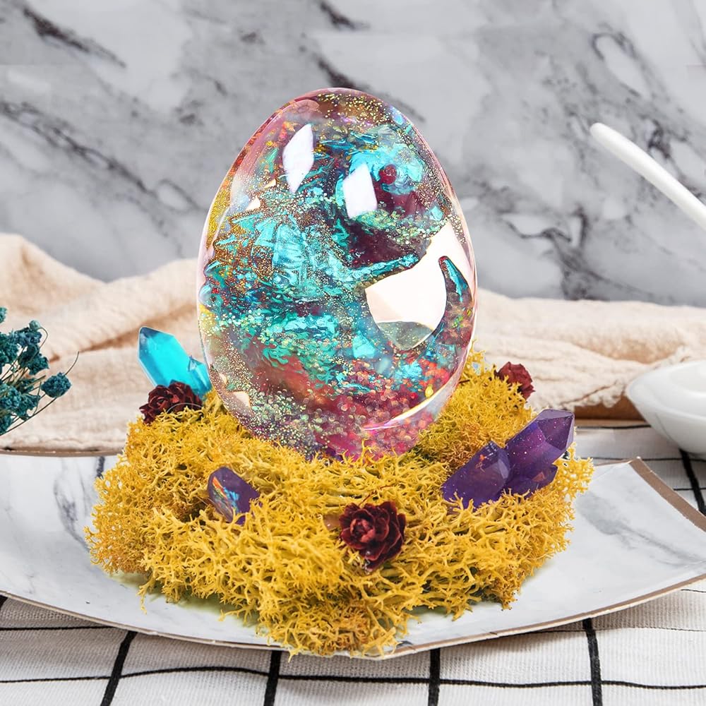 قالب لطيف من الراتنج: اسكب الراتنج أولاً في قالب الديناصورات، ثم الصق اثنين من الديناصورات معًا بالغراء للحصول على ديناصور طفل ثلاثي الأبعاد. بعد وضع ديناصور الأطفال ثلاثي الأبعاد في قالب البيض، اسكب الراتنج، وانتظر حتى يتصلب لإكمال الإبداع.