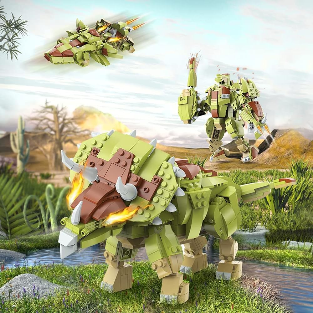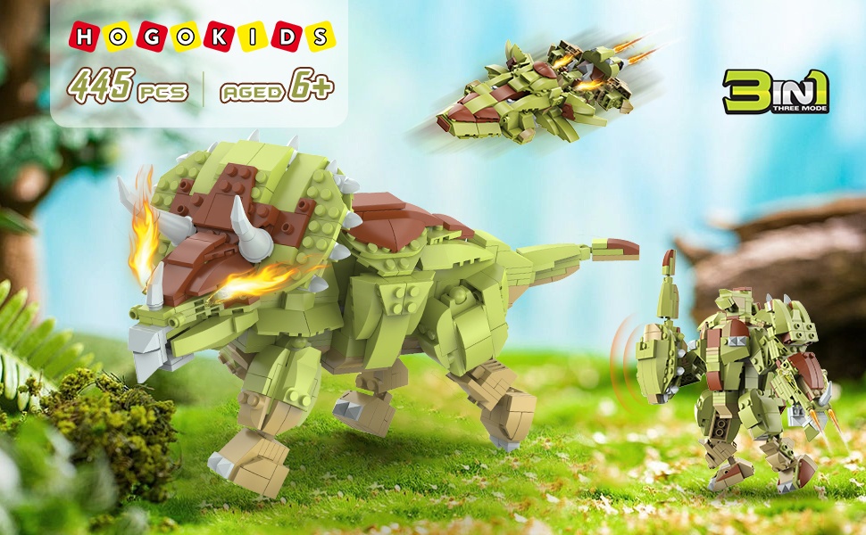 HOGOKIDS Dinosaur Toy Kit for Children - 445 Pieces Dinosaur Building Toy, 3-in-1 Triceratops Robot Spaceship, Dino Building Kits Gift for Boys from 6 7 8 9 10 11 12 Years